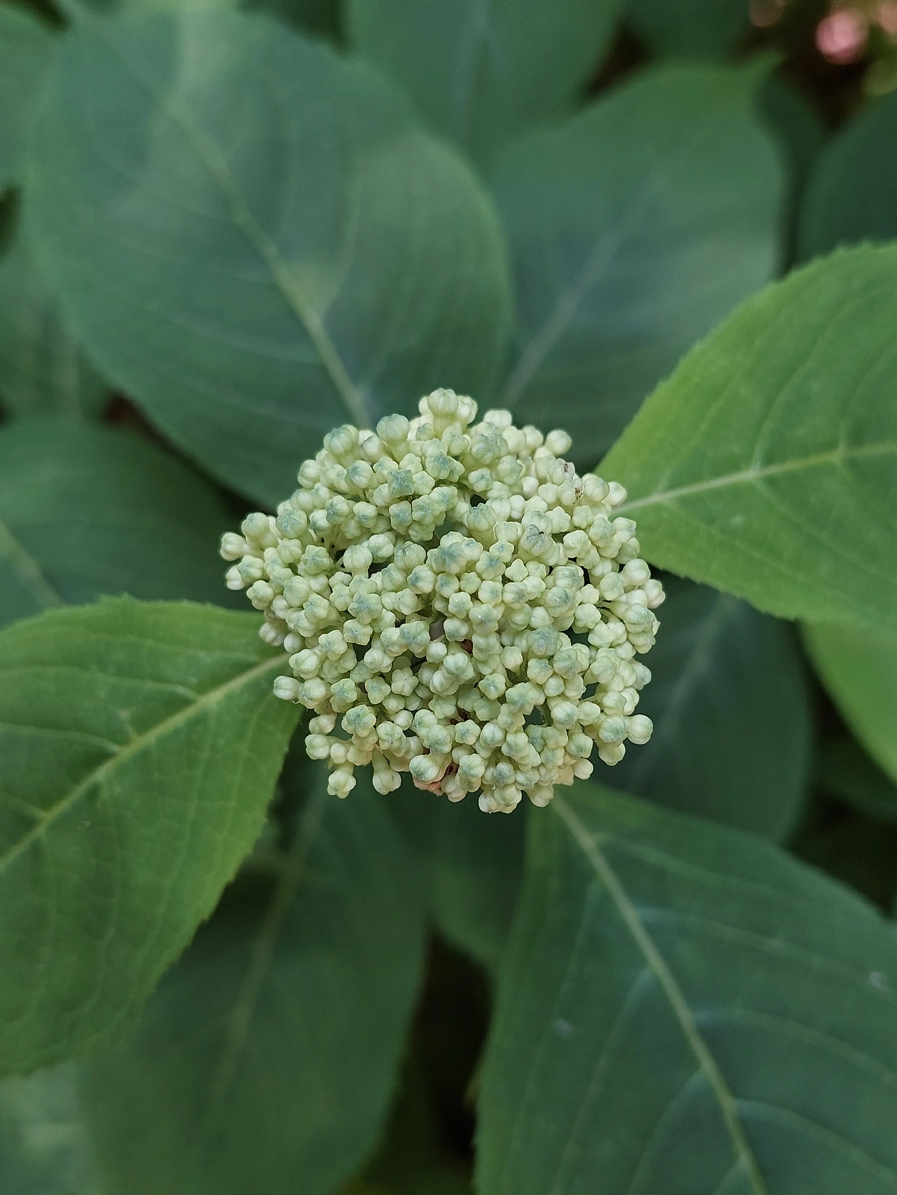 구름다리 바로 앞, 봄에 다래순을 발견한 그곳에 수국 같은 모양새인데 아직 몽글몽글한 몽우리만 모여 있는 걸 본 적이 있다. 오늘 보니 보랏빛 산수국이다. 몇 개의 꽃잎만 활짝 피고 가운데 여전히 몽글몽글한데, 그것이 진짜 꽃이라지. 이럴 줄 알았으면 몽글몽글한 진짜 꽃을 줌인해 볼 걸 그랬다. 한번 눈에 띄면 그때부터 자꾸만 보이는 마법이 산수국에도 적용되면서 올라갈 때는 보지 못했던 산수국이 내려오는 내내 보였다.