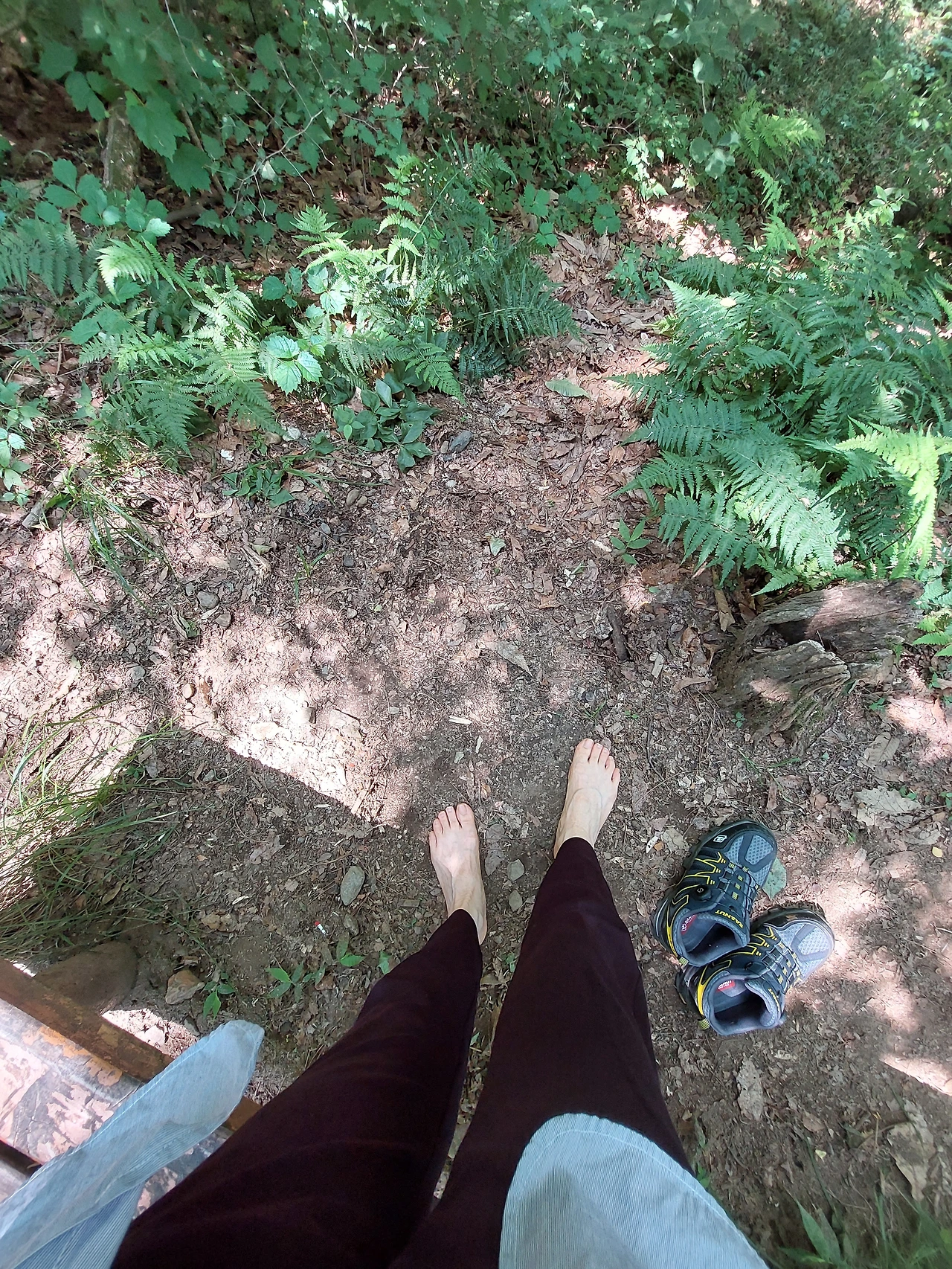 겨우 첫 쉼터까지 가서 앉으려고 보니 의자가 없다. 할 수없이 더 올라갔다. 의자가 나타나자마자 앉았다. 물 마시고 잠시 숨 돌리는 사이 다리 쪽으로 벌레들이 들러붙는다. 윽, 모기퇴치제를 안 바르고 왔다. 일부러 남원별꽃농장(믿고 쓰는 허브제품)에 주문해서 준비해 두었는데. 모자로 툭툭 치면서 신발을 벗고 땅을 밟아보았다. 덕주님이 말한 맨발 걷기를 여기서라도 해보려고. 황톳길이 잘 되어 있는 계족산도 있는데 굳이 여기서 이럴 일인가, 싶다가도 봄부터 꾸준히 다닌 이곳 식장산, 더구나 두 갈래로 갈라지는 등산로에서 지금껏 오른쪽 길만 고집해 온 등산로인데 이제 와서 다른 곳에 가고 싶지는 않다. 익숙한 곳에서 익숙지 않은 짓을 해보기. 이건 내 삶의 재미이기도 하다. 멍석 깔린 곳에서는 재미가 없다. 내가 있는 곳에서 내가 하고 싶은 일을 하고 싶다. 기껏 맨발 걷기를 하면서도 나는 이렇게 의미를 부여하고야 만다.