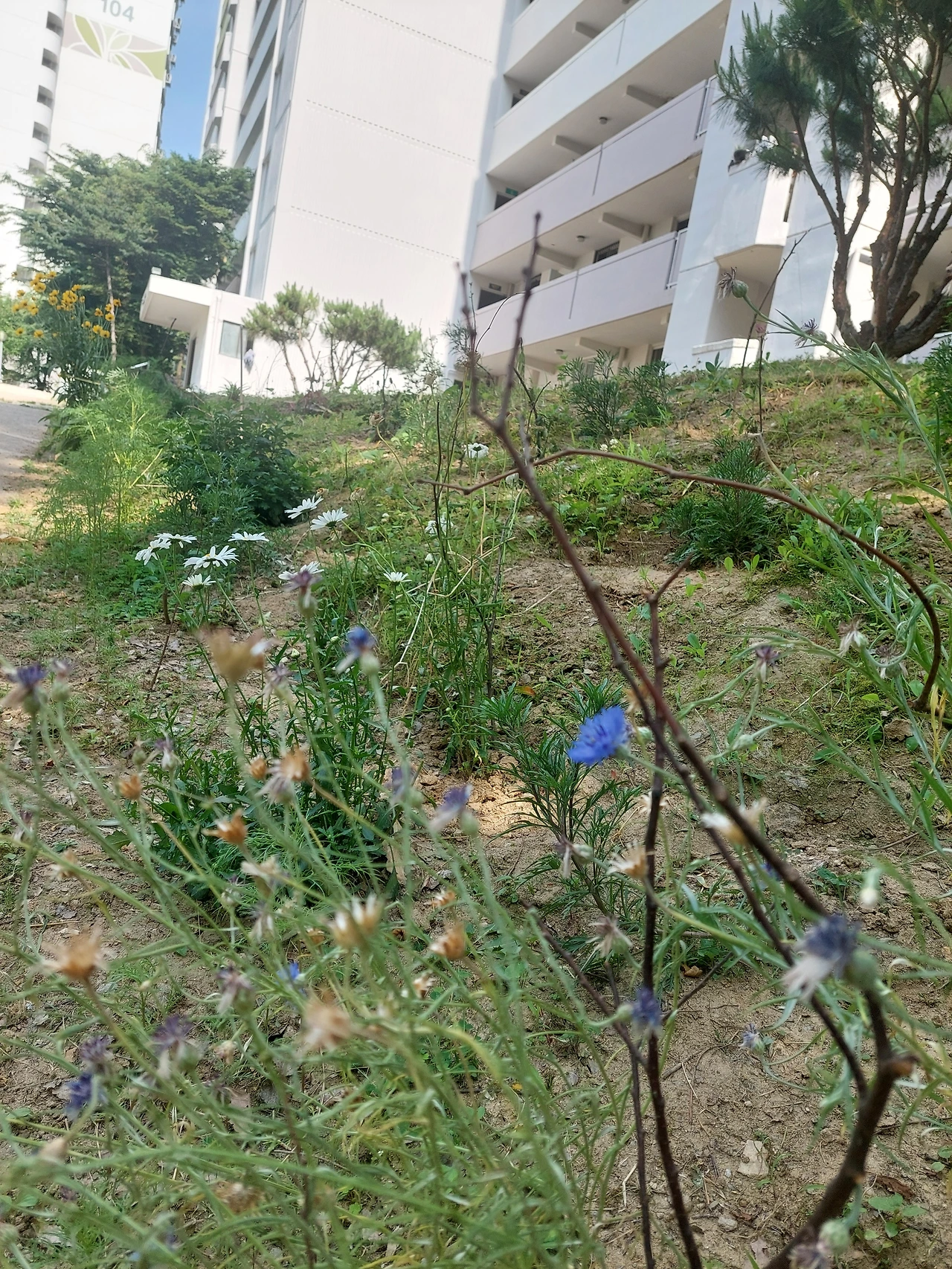 어느 날 그 장면을 목격했다. 등산복 차림의 어르신이 가방에서 뭔가를 조심스레 꺼냈다. 데이지가 아직 피기도 전인데 흙도 없이 뽑혀 와서 그런지 축 늘어져있었다. 미리 연락을 한 듯 또 다른 어르신이 페트병에 물을 담아 들고 나온다. 두 분이 조심스레 화단 한쪽에 데이지를 심었다. 다음 날도, 그다음 날도 어디선가 뽑아온 꽃을 심는 장면을 목격했다. 하필이면 내가 지나가는 시간대가 겹친 건지, 하루에도 수십 번씩 그렇게 심는 건지는 잘 모르겠다. 화단을 가꾸는 건 좋지만 꽃과 나무를 어디선가 뽑아온다는 게 언짢아서 볼 때마다 얼굴을 찌푸렸던 것 같다.