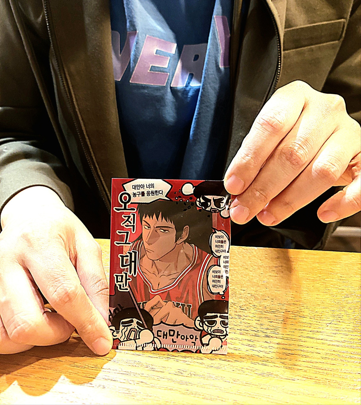 <슬램덩크>(이노우에 다케히코의 농구 만화)에서 이영걸은 친구 정대만을 응원하기 위해 깃발을 든다. ‘불꽃 남자 정대만’은 애니메이션의 바로 그 장면을 그대로 본 따 만든 것이다. (참고로 또 다른 정대만 깃발이 있는데, 원작 그림이다.)