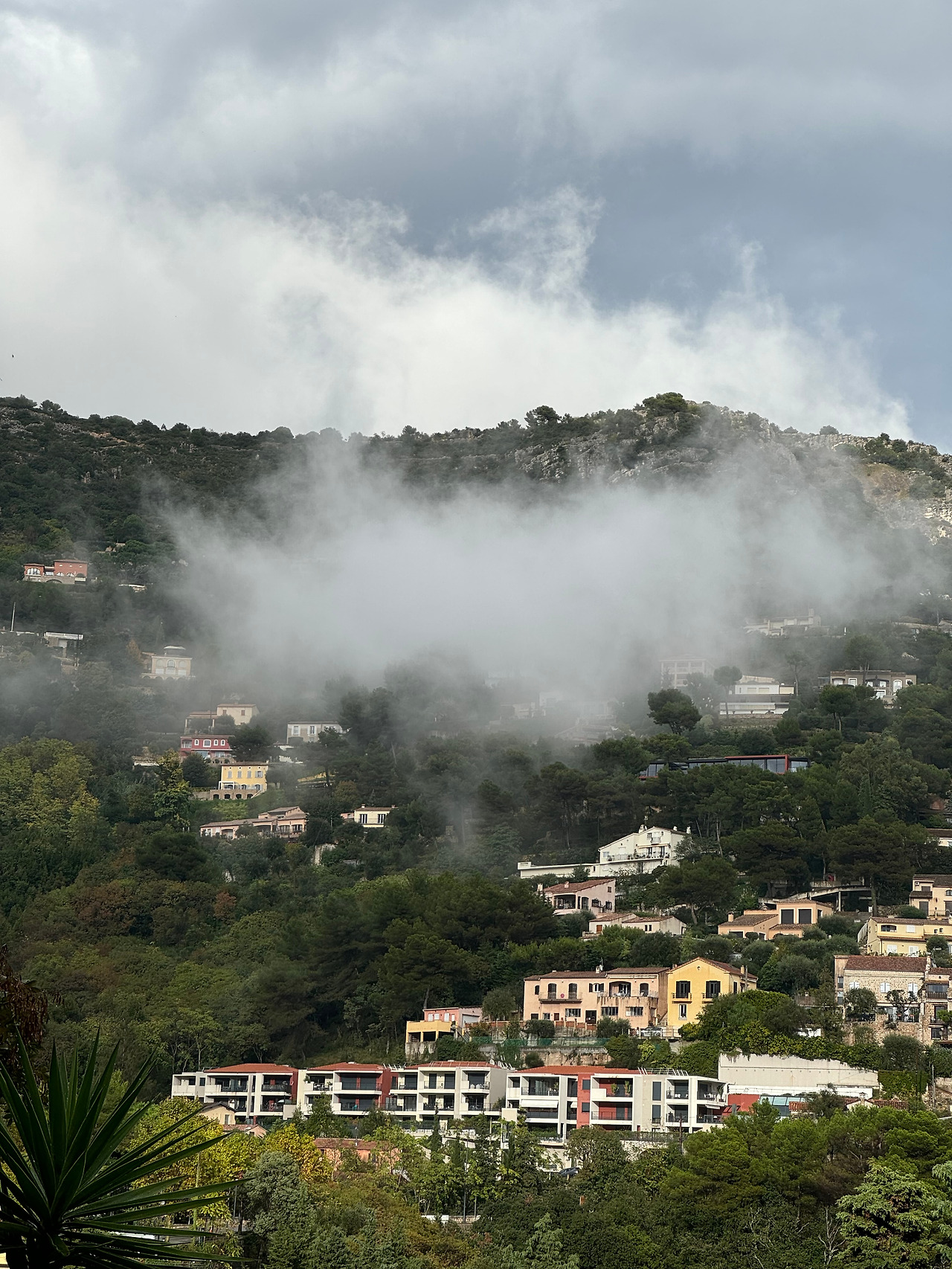 다시 마을 입구로 내려오면서 보니 그새 상점들은 대부분 문을 닫았고, 식당들도 마찬가지였다. 그나마 문이 연 식당은, 구글평점을 보고 나니 그다지 가고 싶지 않았다. 지도상으로 에즈에서 20분 거리 즈음에 맛집으로 보이는 식당이 있어서 전화를 해보니 7시부터 저녁 장사를 한다고 한다. 아직 2시간 이상 시간이 뜨는데 어쩌나 고민하는 와중에, 저 멀리 짙은 안개가 보였다. Pielle로 향하는 벼랑이 맞닿은 산길에 안개가 끼면, 거기에 해까지 지면 위험하다. 에즈마을에서 저녁 식사 시간까지 기다릴 수는 없었다. 어두워지기 전에 어서 숙소로 돌아가야 했다.