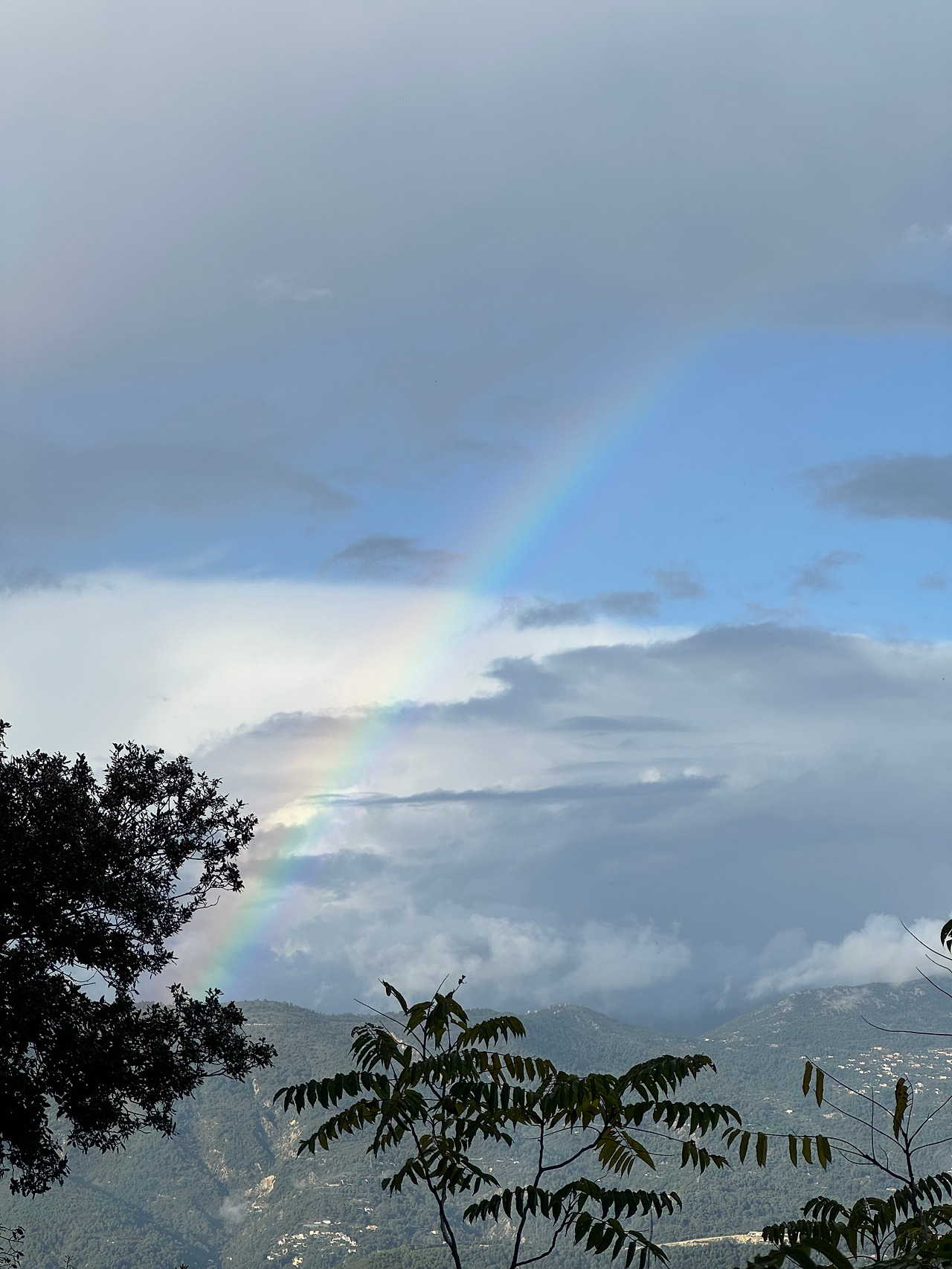 구름이 조금 끼긴 했지만 어제 보다는 맑은 날씨였다. 아침 9시 부지런히 짐을 챙기고 차로 산골짜기 마을을 나왔다. 굽이굽이 산길을 넘어가는 데 갑자기 하늘에서 거대한 오색의 빛깔이 번쩍였다. 분명 무지개다. 근처에 급히 차를 세웠다. 머리 위에 있던 무지개가 어느새 저 멀리 작게 보였다.