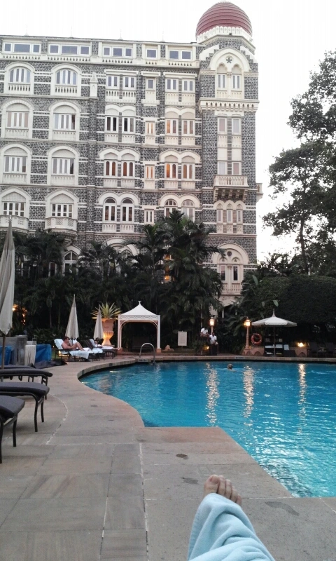 첫날 일정이 끝나고 야외 수영장 선베드에 느긋하게 누웠다. 핸드폰으로 셀카를 몇장 찍고 별 생각 없이 뭄바이 타지 호텔을 검색해 보았다. 허걱. ‘테러’라는 단어가 나온다. 뭐지? 2008년에 호텔에 테러가 일어났다. 무장소총 사격이 오고가고 수류탄이 터져서 거의 200명 가까이 죽었단다. 아이고. 갑자기 호텔에도 정이 떨어지기 시작한다.