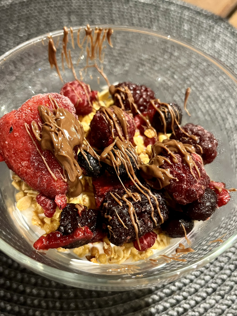 시리얼+그릭요구르트+각종베리들+누텔라의 조합이다.