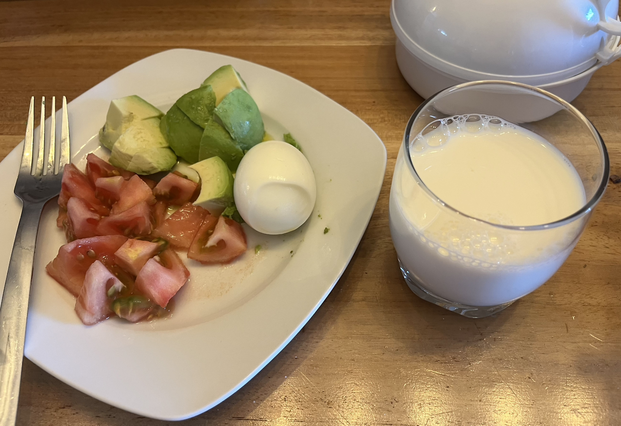 그때그때 다른데 보통 삶은 달걀, 아보카도, 토마토등을 먹는다.