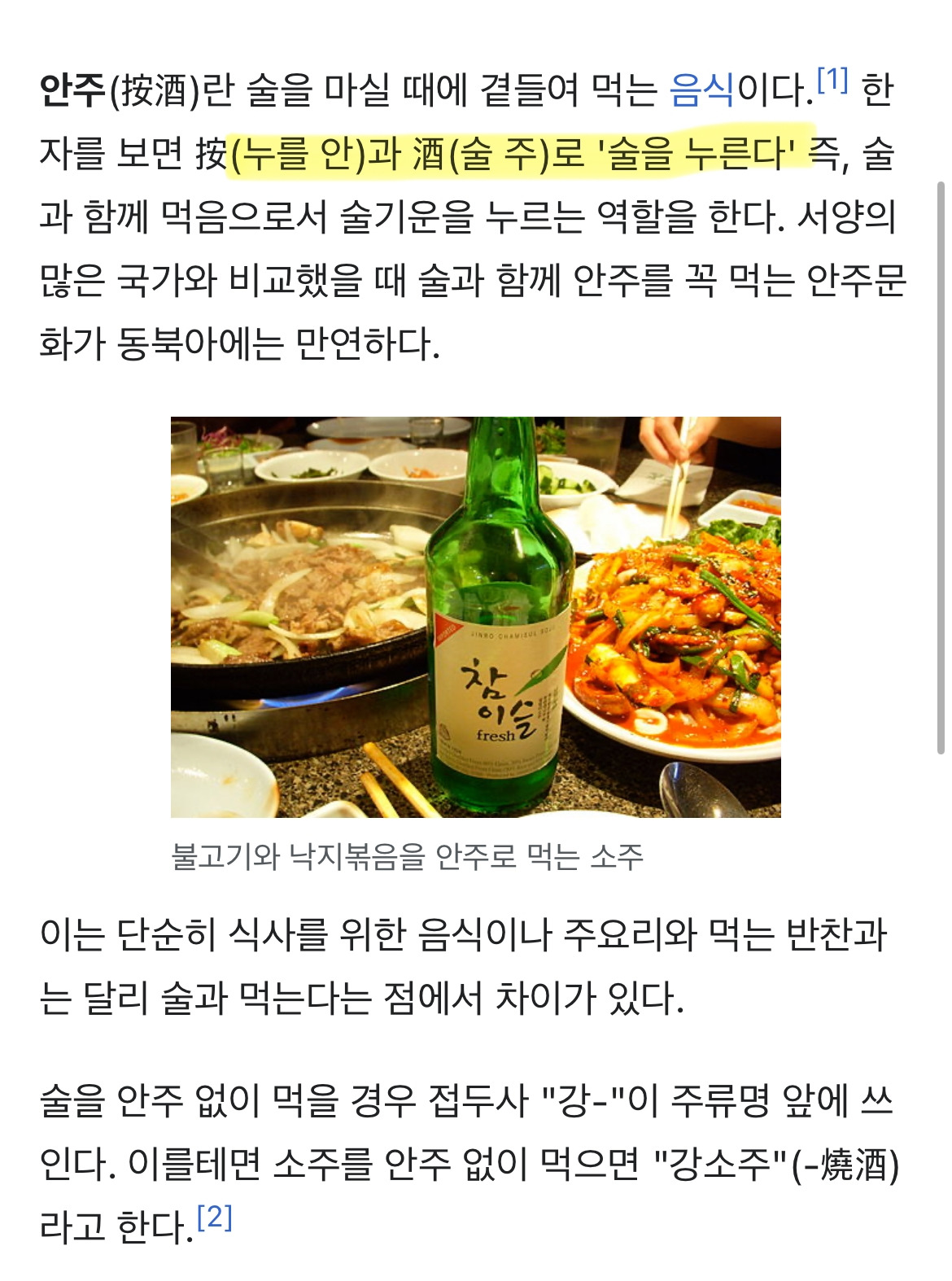 이 사람은 정녕 안주(按酒)에 ‘주’ 자가 ‘술 주’ 자라는 것을 모른다는 말인가?