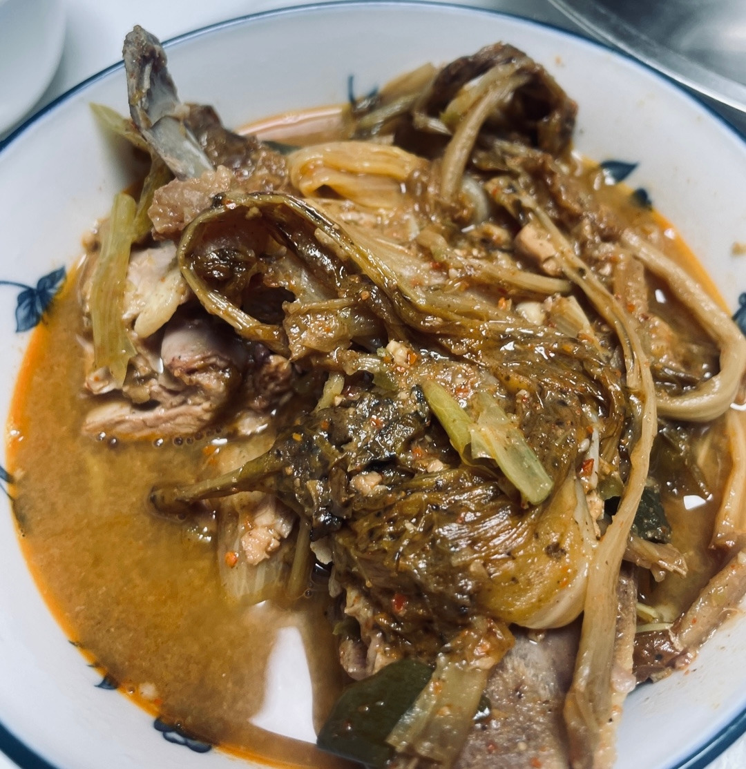 나는 뼈다귀해장국과 갓 담근 열무김치를 좋아한다.