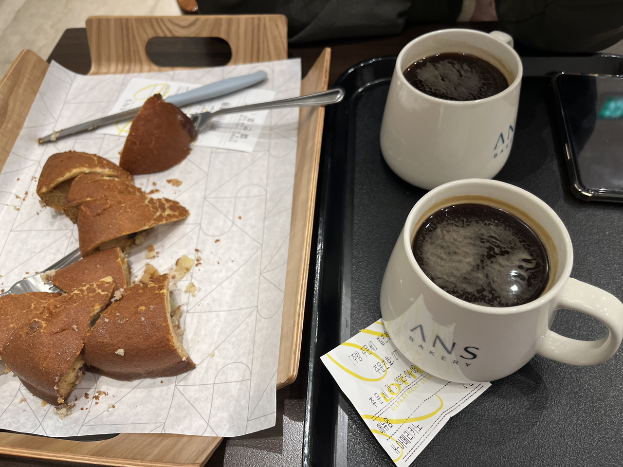 커피와 빵 하나를 시켜 수다 삼매경에 빠지고,