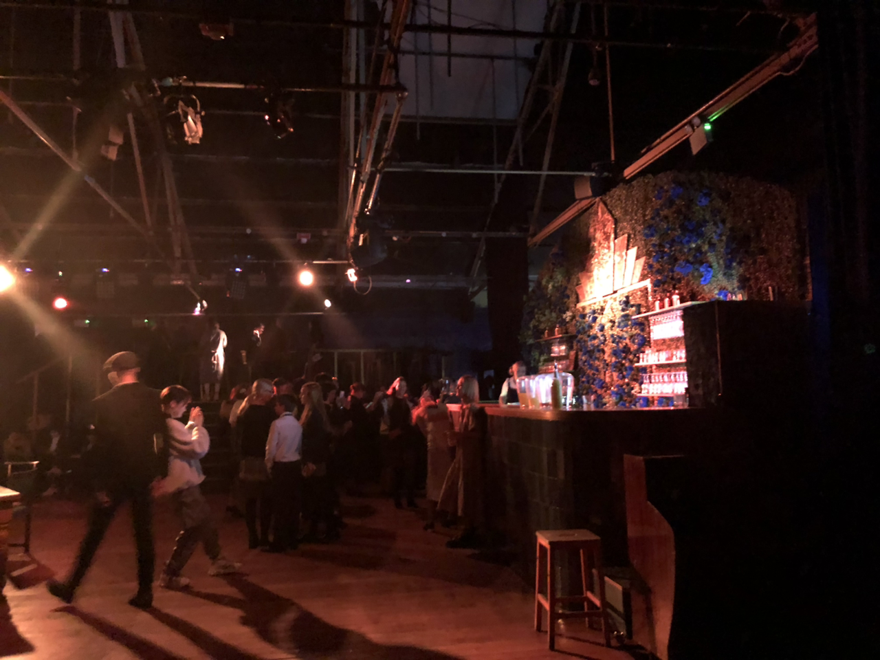 다행이었던 것은 공연이 이제 막 시작한 참이었다. 원작을 알고 갔기에, 스토리 흐름이 극초반인 것을 알 수 있었다. 아마 공연 안내 사항을 말하느라, 공연 시작은 한지 얼마 안 된 것이리라. 한편엔 술을 마실 수 있는 바도 있고, 실제로 관객들이 잔을 들고 다니며 마시고 있었다. 공연 무대, 홀, 계단, 테이블 등 정말 개츠비 하우스의 파티장에 온 것 같았다. 그리고 1920년대 의상을 입고 오라고 한 이유가 느껴졌다. 물론 우리처럼 현대복을 입고 온 사람들도 있었지만, 그들을 제외하고 나머지 사람들은 누가 배우이고 누가 관객이며, 또 누가 진행요원인지 알 수가 없었다. 그냥 손님인가 싶었는데 갑자기 대사를 치면서 배우들과 연기를 할 땐 깜짝 놀랐다.