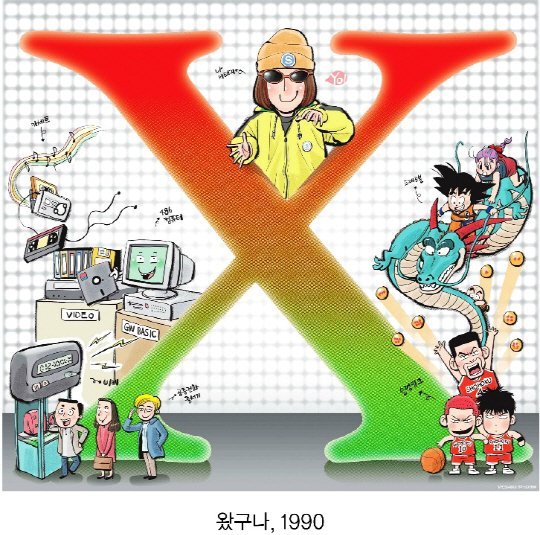 X세대는 캐나다 작가인 더글러스 쿠플랜드가 1991년에 발표한 소설 《Generation X: Tales for an Accelerated Culture》에서 처음 나온 용어. 90년대 초중반 경제적 풍요를 기반으로 개성과 자기 주장이 강해진 세대로 이른바 산업 역군이었던 386세대와 많은 차이를 보였습니다. 대중문화가 한층 더 산업으로 발전하게 되었으며 서태지와 아이들, 슬램덩크, 삐삐 등으로 대변됩니다. 80년대의 수퍼스타 조용필이 자기혁신을 하여야만 할 환경적 요인이었습니다.
