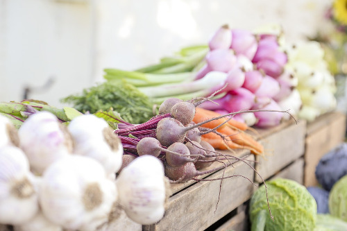 여러 종류의 제철 과일과 야채가 가득 쌓여 있어, 사람들이 몰렸다.