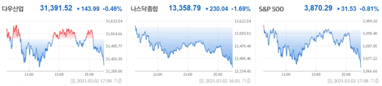 - 미국증시: 어제밤 미국 증시는 전반적으로 하락했다. 나스닥은 1.69% 하락한 13,358.79에, S&P500과 다우지수 모두 각각 0.81%,0.46% 하락했다.