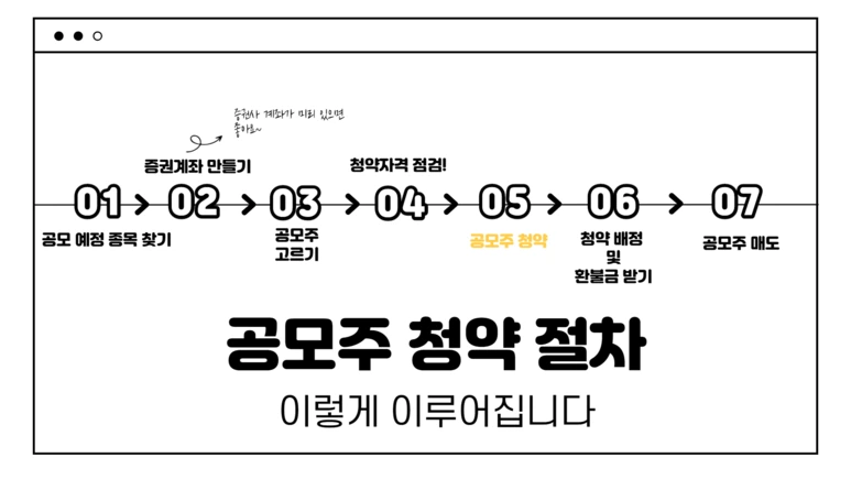 * 공모주 청약: 투자자가 공모주를 배정받기 위해 신청하는 것