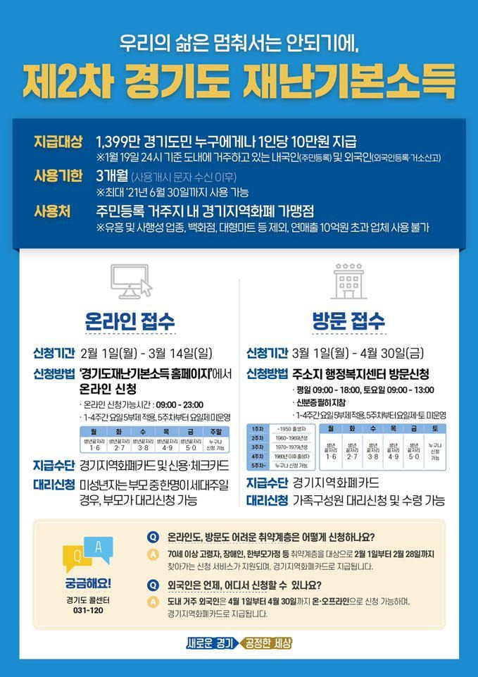 경기도에서는 2월 1일부터 모든 도민에게 10만원씩 재난지원금을 지급한다. 출생년도 끝자리를 맞춰서 신청할 수 있다.