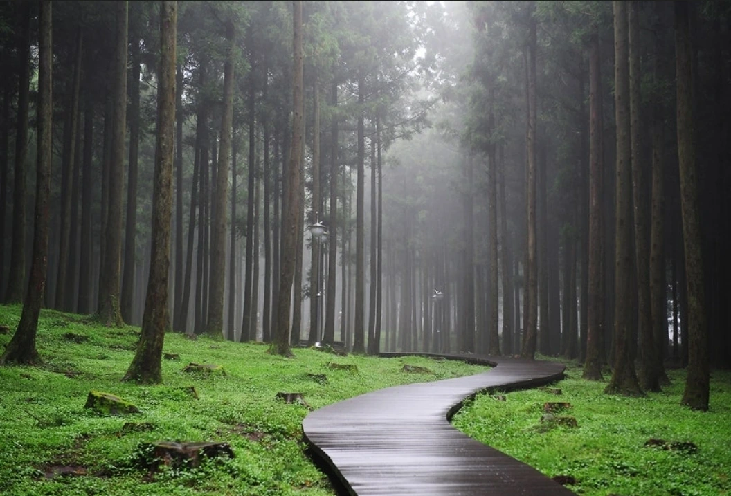 깊고 높은 나무들로 우거진 골짜기 아래쪽 그늘진 곳에 햇빛을 받으려 애쓰는 작은 나무가 보인다.