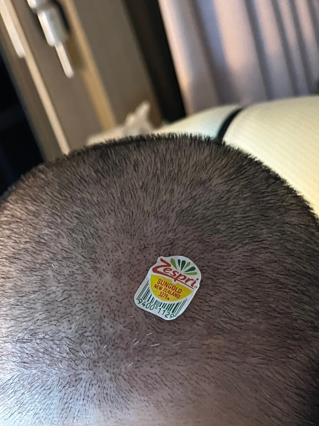 오늘은 키위를 깎아먹는데 아이들이 내 머리에 키위상표스티커를 붙여놓고는 사진도 찍고 재밌다고 난리다.