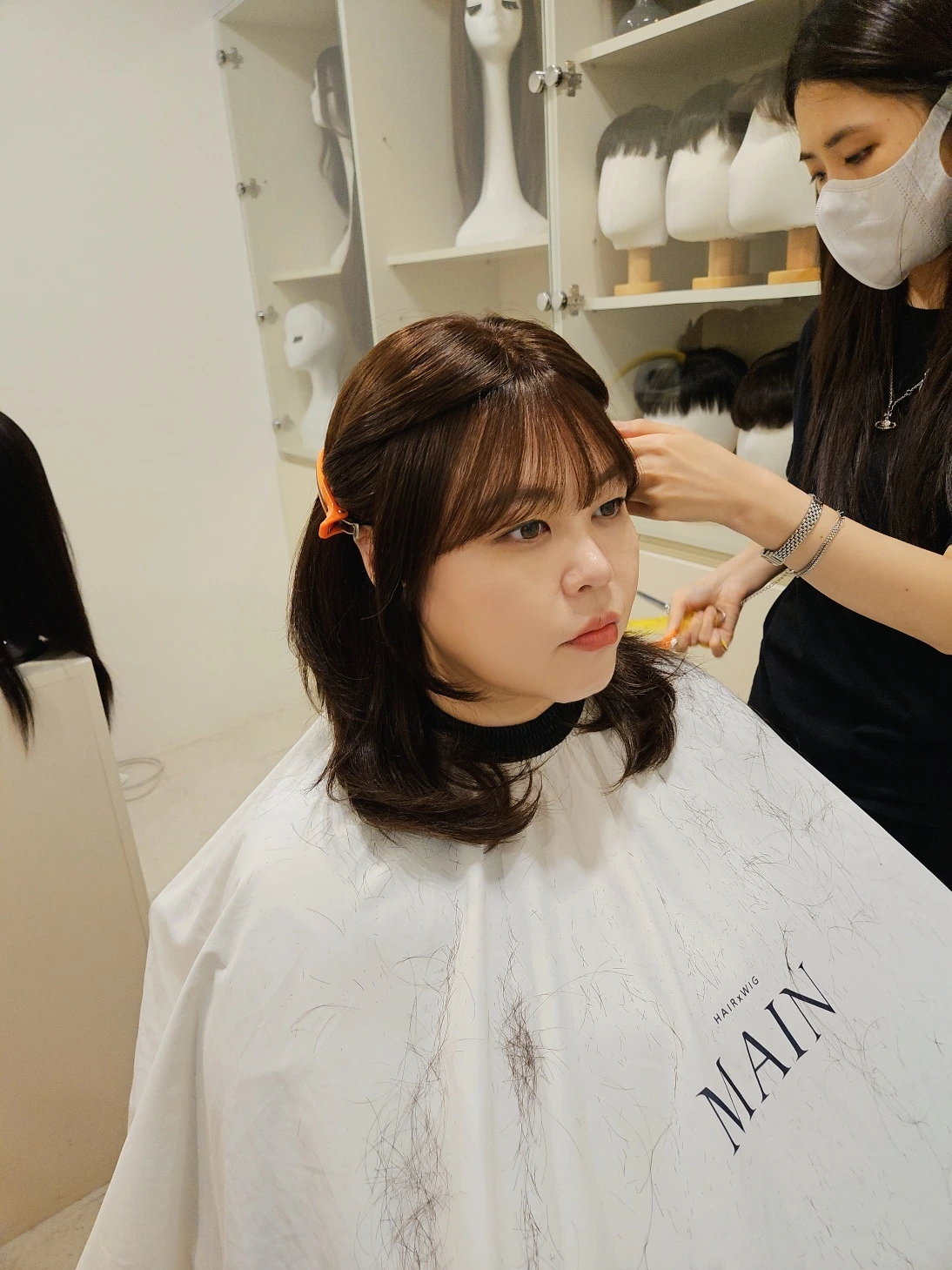 인모로 만들어진 가발이라 가격이 상당히 나갔음에도 불구하고 왜 인지 모르게 가발티가 나는듯했지만 언니들과 엄마는 말 안 하면 가발인지 모르겠다 하는데 이게 위로인지 진짜인지는 모르겠다.