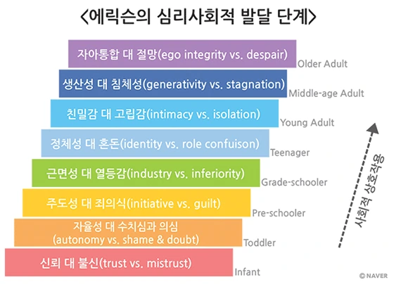 에릭 에릭슨의 심리사회적 발달 8단계입니다.