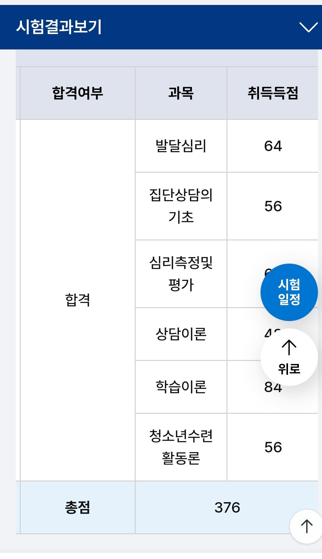 총 600점 만점에 평균이 60점, 과목당 과락이 40점 이어서 여기에 들기만 하면 합격이었다.