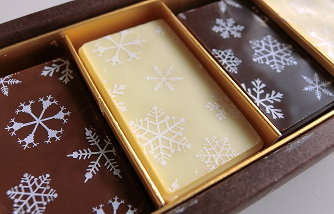 이번 주역은 '멜로디'지만 'X'mas 스노우 크리스탈'도 상당히 공들인 제품이다. 밀크 초콜릿, 다크 초콜릿, 화이트 초콜릿의 세 종류로 표면에는 눈 결정을 본뜬 그림이 인쇄되어 있다. 이 제품은 크리스마스까지의 한정 상품이다. '몽 로와르'에서는 모든 제품의 기본이 되는 다크 초콜릿은 벨기에산 제품을 사용하며, 밀크 초콜릿과 화이트 초콜릿은 단 맛을 한층 줄이고 있다. 요는 어른도 좋아할 수 있는 초콜릿이라는 것이다. 실제로 먹어보면 다들 부드러워서 미국산 대량 생산품과 같은 목에 닿는 달큼한 맛이 전혀 없는 것이 좋다.