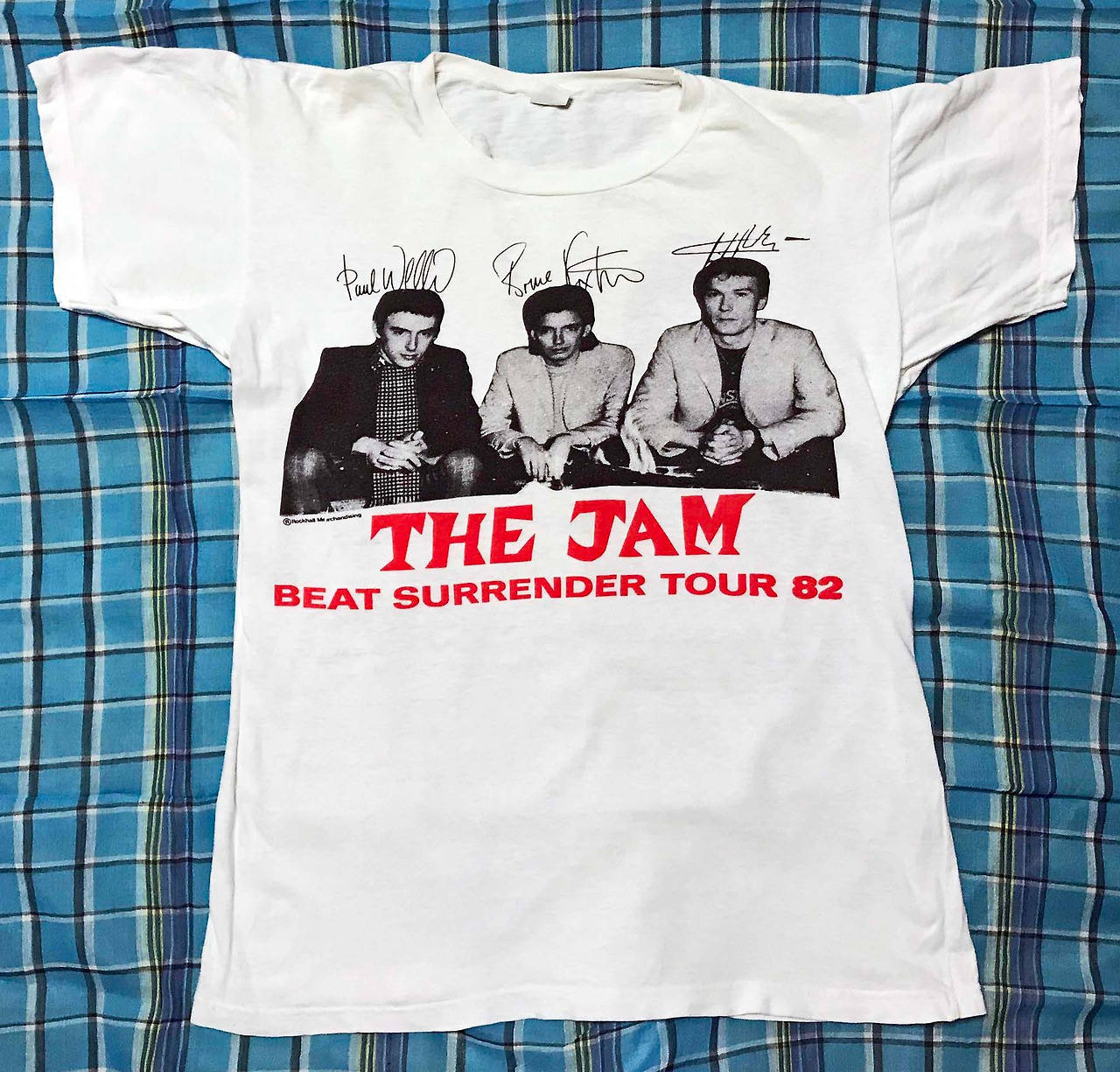 가장 소중하다까지는 아닌 것 같지만 The Jam의 투어 티셔츠는 소중하게 여기고 있어요. 1982년에 열린 그들의 마지막 투어인 Beat Surrender Tour의 영국 공연시의 티셔츠인데요, 당시에는 구입하지 못했고 나중에 The Style Council을 거친 후의 폴 웰러(Paul Weller)가 솔로 투어로 일본에 왔을 때 공연장에서 샀어요. 1991년 가을이네요. 재고 일괄 세일 같은 분위기라서 오래 전 투어들의 티셔츠를 폴 웰러가 다양하게 가져왔었어요.