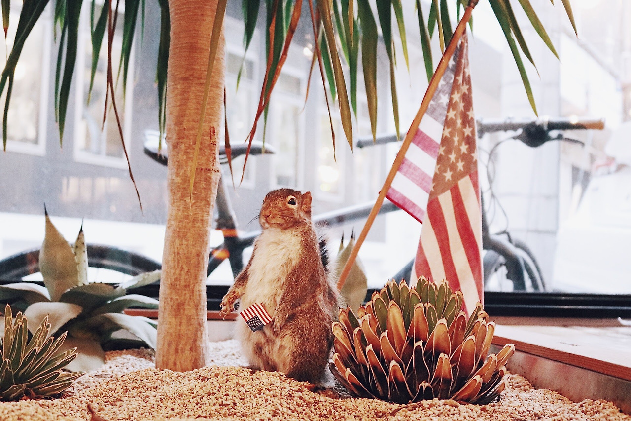 미국 국기를 들고 있는 다람쥐가! 너무 작아서 그냥 지나칠 뻔했네.