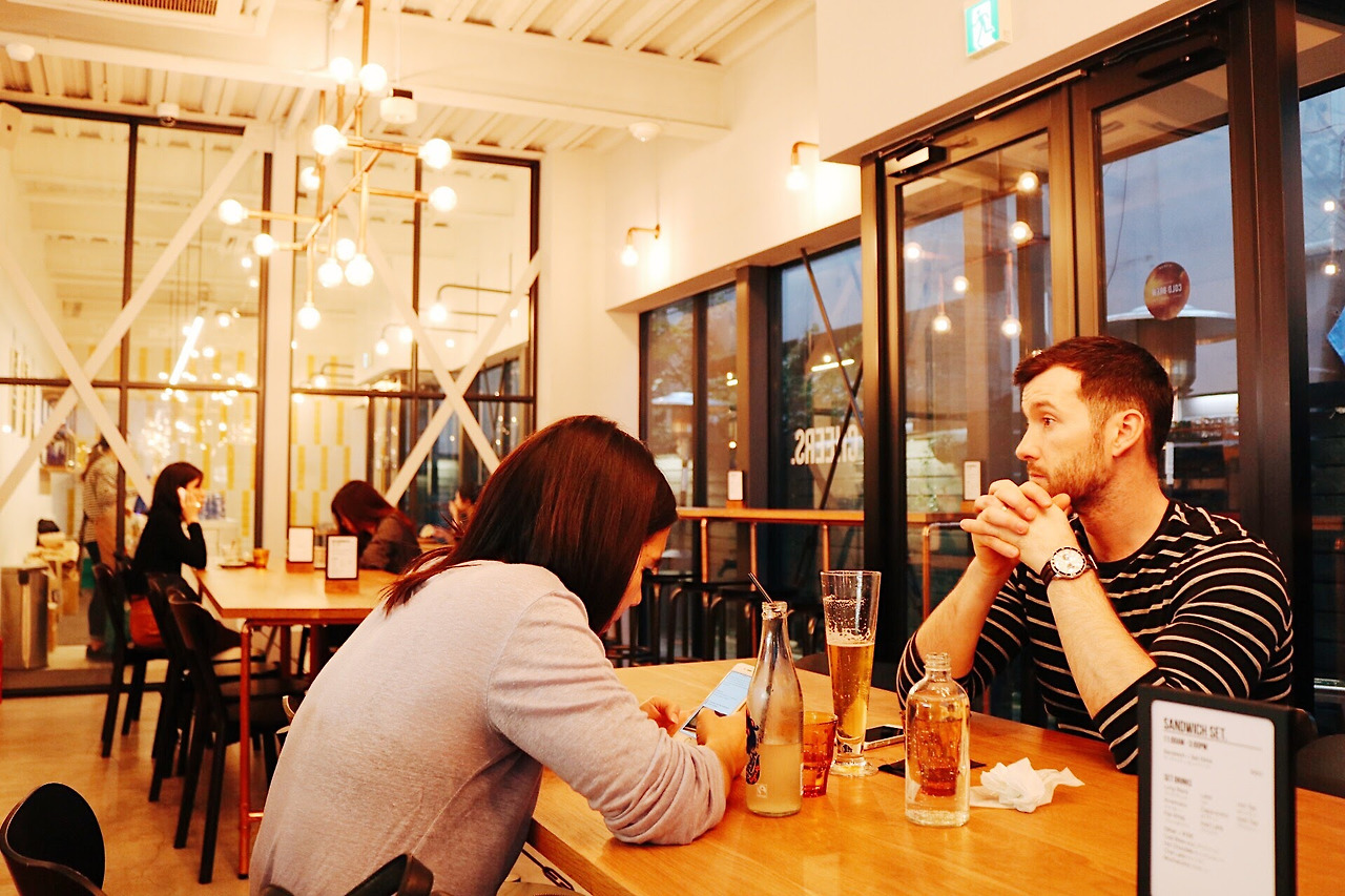 우리와 같이 카페라테 한잔에 독서 타임을 즐기는 이들도 있는가 하면, 노트북을 열심히 두드리며 일하는 사람, 여행으로 찾아온 일본에서 잠시 쉬기 위해 들어온 관광객도 많았다. 여기가 일본인가 싶을 정도로 서양인들이 많은 건 이 날 뿐이었을까?