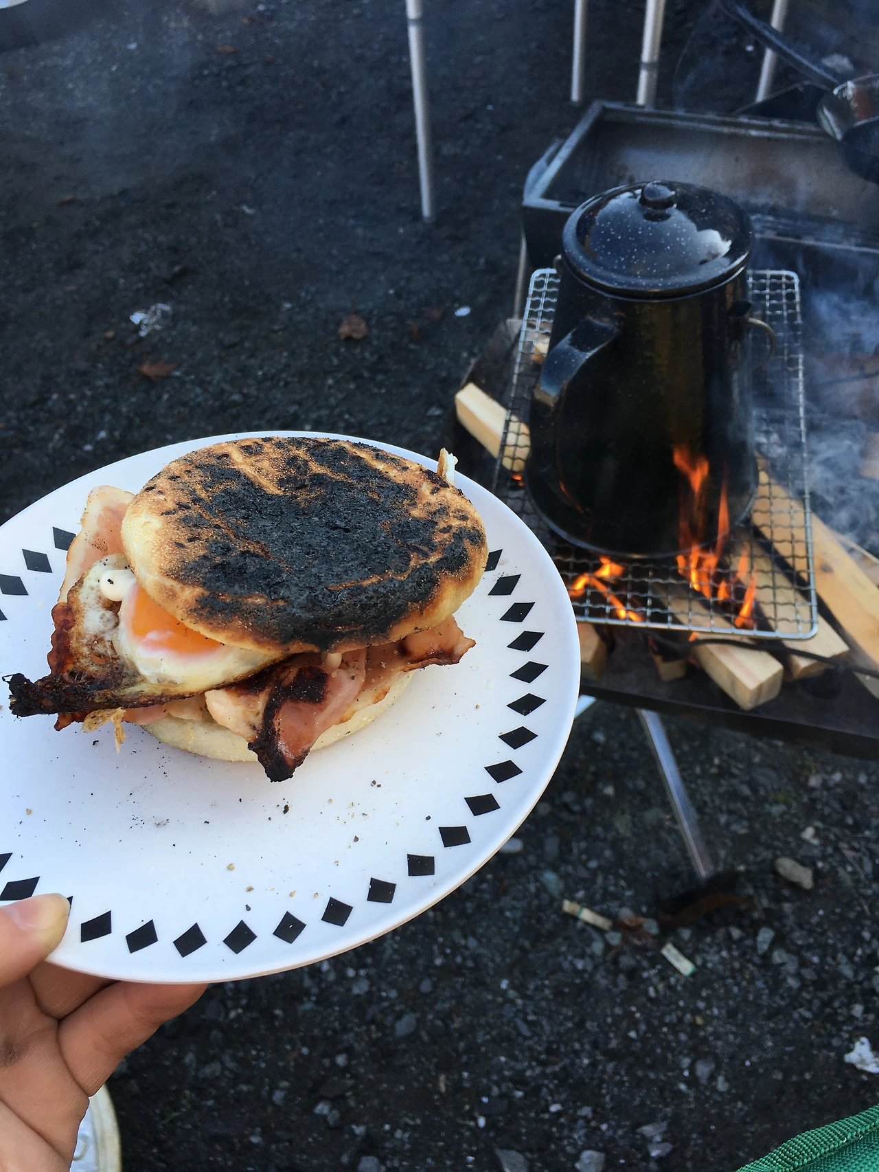 장작불 다루는 게 아직 어려워서, 새까맣게 탄 머핀과 따뜻한 커피 한 잔.