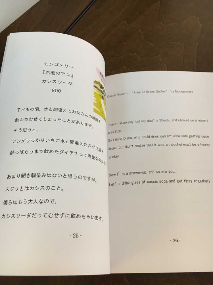 셀프 서비스다. 음료와 음식을 카운터에 가서 시키면, 점원이 가져다 주는 시스템이다. 메뉴에는 그 음식에 관련된 책을 소개한다. 양이 적지만 맛도 괜찮다. 술에도 의미를 부여했다. 카시스 소다는 <빨강머리 앤>에서 발췌했다.