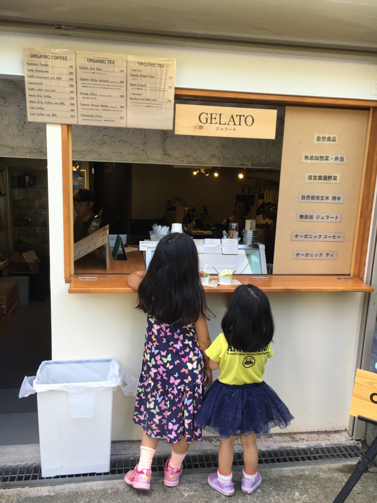먹고 놀이터에서 신나게 논 후, 놀이터 앞(요요기 공원 부근)에 유기농 카페가 생겼기에 가봤다. 커피도 젤라또도 모두 오가닉. 커피에 넣는 설탕도 그냥 설탕이 아니라 오가닉 시럽인데, 향기롭고 좋았다.