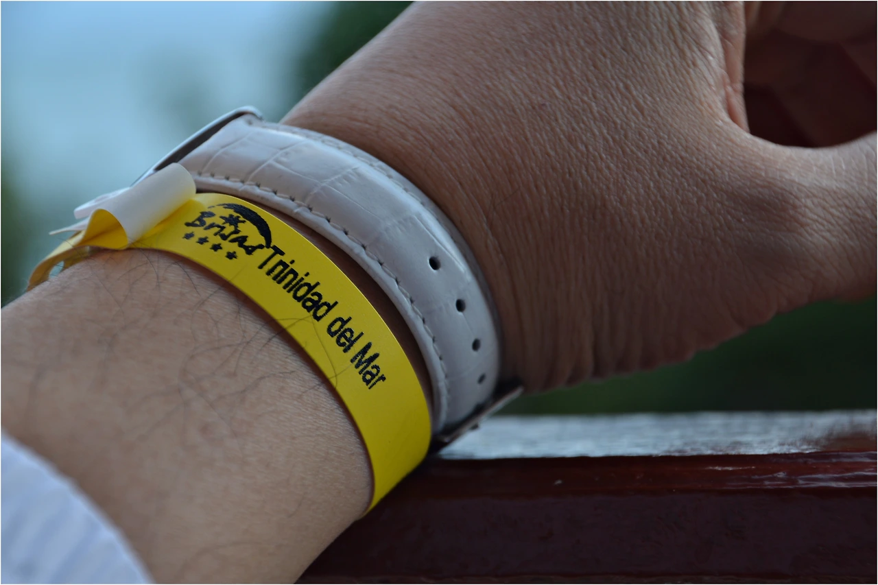 호텔 체크인을 하고 방으로 짐을 옮겨 놓은 후 본부방에 모두가 모인 시간이 대략 6시 10분쯤이었다. 본부요원들(ㅋㅋ 도사님, 직진님, 총무님을 말한다)은 저녁식사 대책회의가 한창이었다. 여행사에서는 앙꽁 호텔에서는 조식만 포함이라고 했고, 들어오면서 보니 이곳은 호텔들만 있을 뿐 주변에 식사를 할 만한 식당은 전혀 보이질 않았다. 또 한국식 저녁식사(그래 봐야 컵라면과 햇반 ㅎㅎ)를 해야 하나 생각하고 있는데 방에 있는 물통에 보니 물도 없다. 아바나의 5성급 호텔과는 달리 이곳은 3성급 호텔이라 물도 안 준다며 투덜투덜했다. 그런데 아무리 생각해봐도 이상한 점이 하나 있었다. 체크인을 할 때 우리 일행 모두에게 노란색 띠를 손목에 채워준 것이다. 이건 뭐 어디 놀이공원 갔을 때 자유이용권을 손목에 채워주는 것과 비슷한 것이었다.