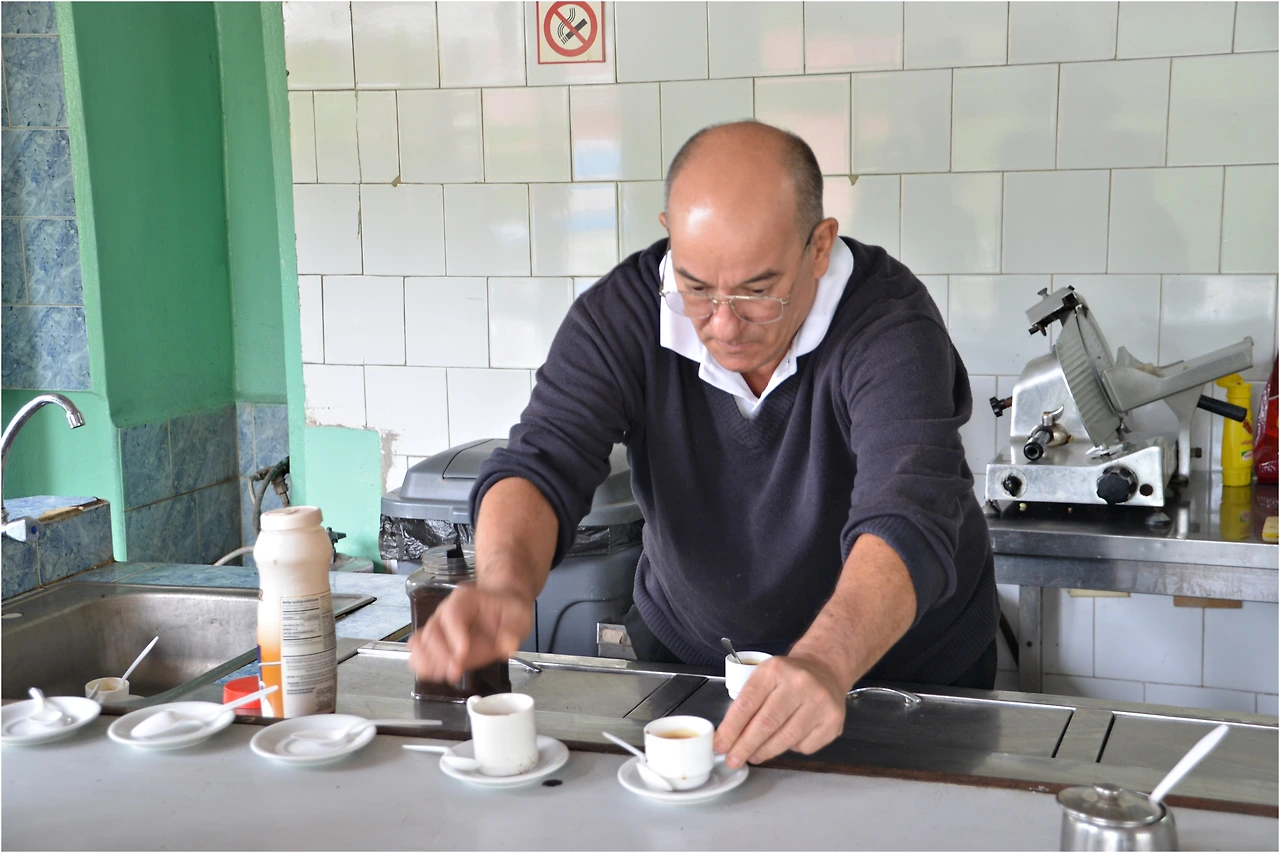 조그만 휴게소에서 현지인들이 마시는 커피를 주문해 마셨다. 검은 점퍼를 입은 훌리오가 주문을 도와주고 있다. 휴게소 주인은 커피를 정성스레 만들어 내놓았다. 산타끌라라까지는 아바나에서 3~4시간 정도가 걸리는 거리이기 때문에 중간에 다시 한 번 휴게소에 들렀다. 이번 휴게소는 앞선 곳과 비교하면 꽤 규모도 있었고 깔끔해 보였다. 그곳에서 휴게소 입구 쪽에 있는 작은 가게를 발견했고 나무로 만들어진 컵받침이나 냄비받침을 팔고 있었다. 직진님이 사 온 것을 보니 꽤 괜찮은 아이템이라는 생각이 들었다. 색깔이 조금씩 다른 나무를 모양대로 잘라 붙여 만든 나름 조각품이었다. 나와 유쾌님, 총무님 등이 그곳으로 갔다. 우리 많이 살 거니까 조금 깎아달라 흥정을 했다. 역시 흥정을 해야 제 맛이다. 냄비받침 3개를 사고 서비스로 컵받침도 하나를 공짜로 얻었다. 물건을 파는 청년도 웃으며 흔쾌히 장사를 하고 있었고 조각품(?)에 ‘Cuba’를 새겨 달라고 했더니 인두로 손수 나무에 새겨 주었다. 쿠바 사람들은 역시 흥 부자들이란 생각이 또 들었다.