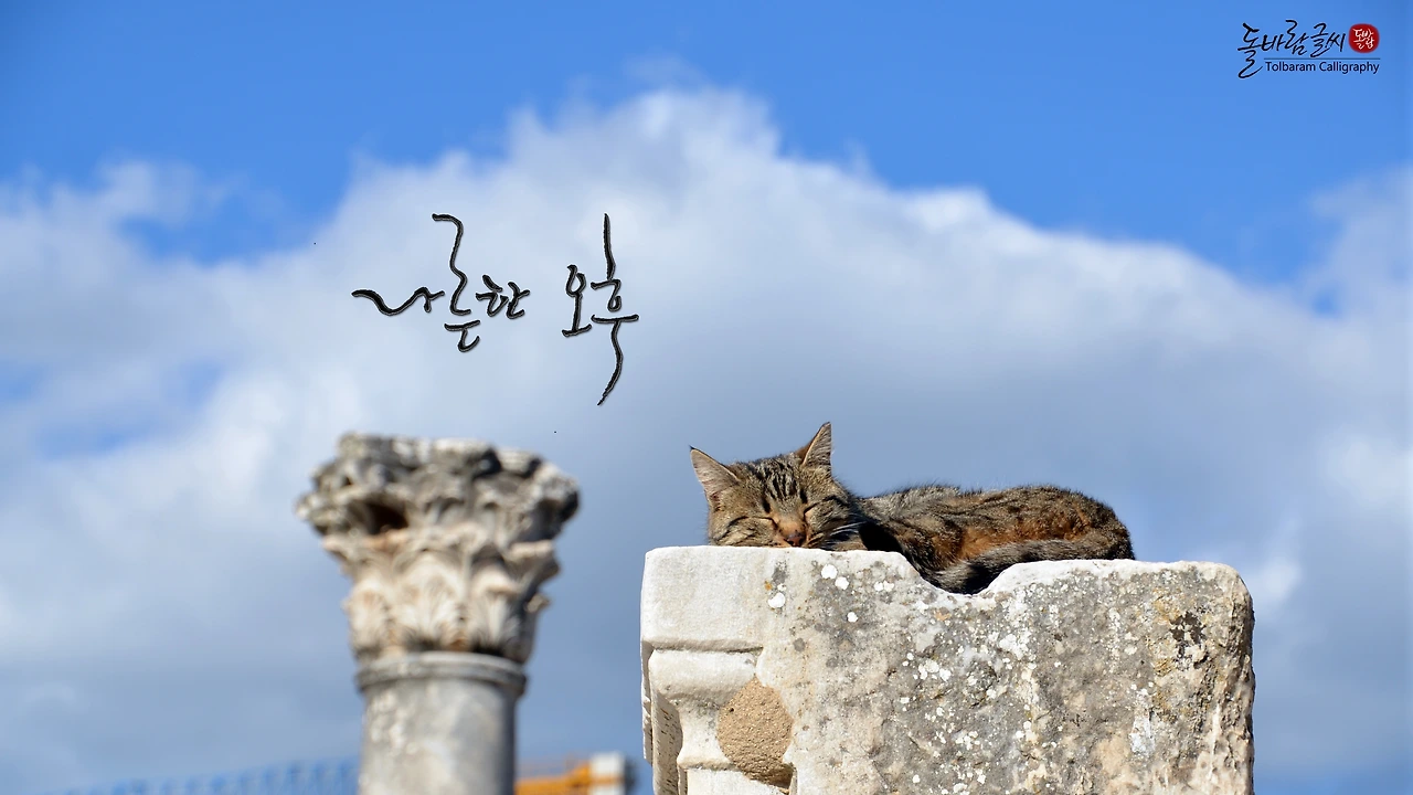 햇볕으로 데워진 따수운 석조 기둥 위에서