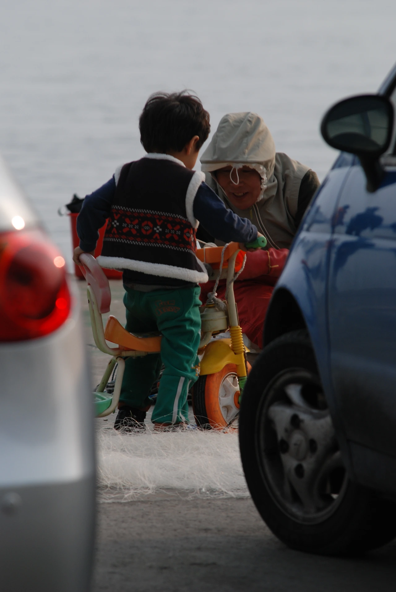 낡은 세발자전거를 끌고 들어온