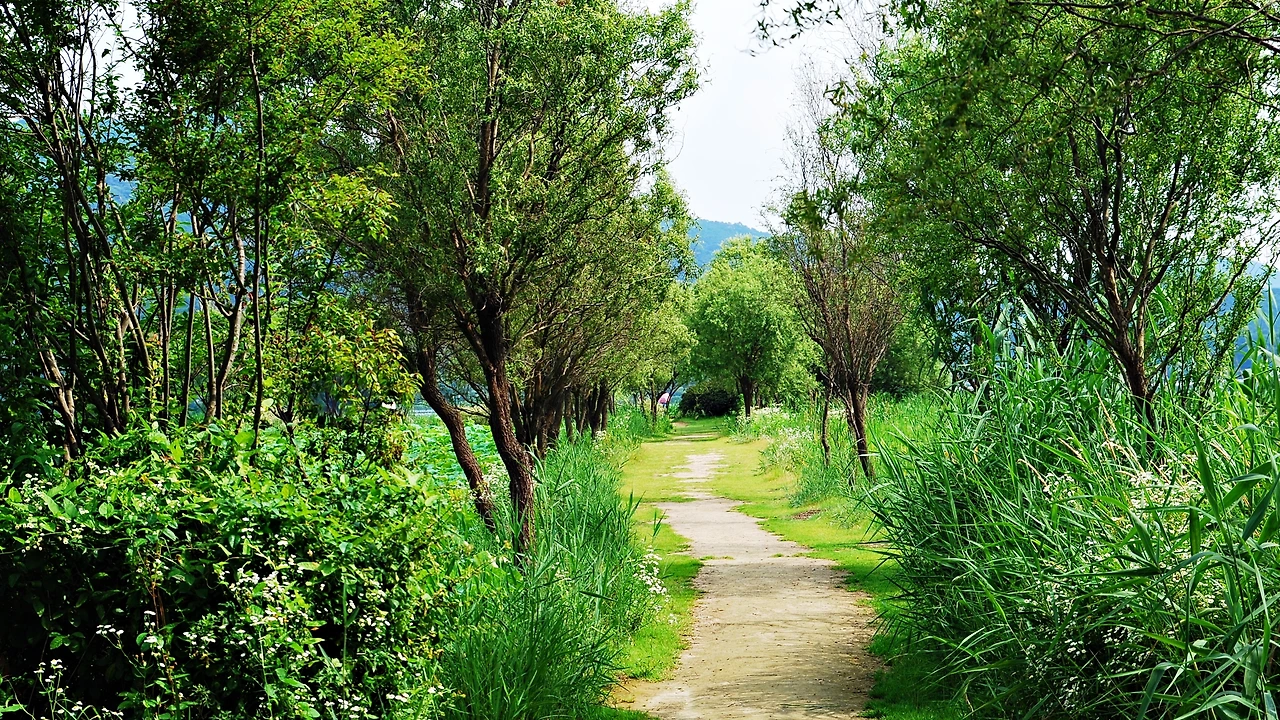 앞서 말했지만 세미원에는 휴식을 취할 만한 그늘이 별로 없다. 그런데 6개의 연못과 몇몇 부대시설을 차분히 둘러보다가 보면 작은 숲길(그러나 여기서 나무 그늘을 기대할 수는 없다)을 만나게 되고 그 길을 따라 계속 가다 보면 세미원 위를 지나가는 다리를 만나게 된다.