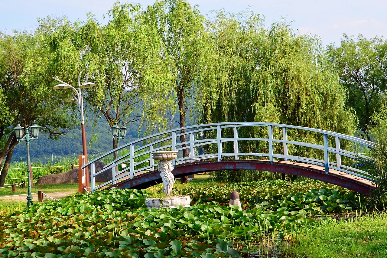 그런 모네의 정원이 이 세미원에 재현되어 있다. 몇 개의 연못을 지나며 풍성하고 기품 있게 피워낸 연꽃을 감상한 후에 길을 따라 걷다 보면 모네가 사랑해서 수많은 연작을 남겼다는 지베르니의 그 정원이 나타난다. 물론 프랑스에 발자국을 한 번도 남겨보진 못한 터라 지베르니에 있는 모네의 그 정원의 풍광과 얼마나 유사한지는 모르겠으나, 그래서 그림에서 느껴지는 그 아른하고 고요한 포근함이 세미원의 이 풍경에 얼마나 담겼는지는 알 수 없으나 학창 시절 배웠던 기억 저 편 어딘가에 잠자고 있던 아련한 인상을 여기서 다시 떠올리게 할 수 있었던 것만큼은 분명하다. 그림에 차분히 담겨있던 그 풍경이 이 먼 대한민국 양평의 세미원이라는 곳에 현실로 재현이 되니 그 그림에 대한 추억을 가진 이들은 꼭 저 다리 위에 사람을 세워놓고 인증샷을 찍는 경우가 많다. 새로운 즐거움으로 재탄생하게 된 모네의 정원이라 하겠다.