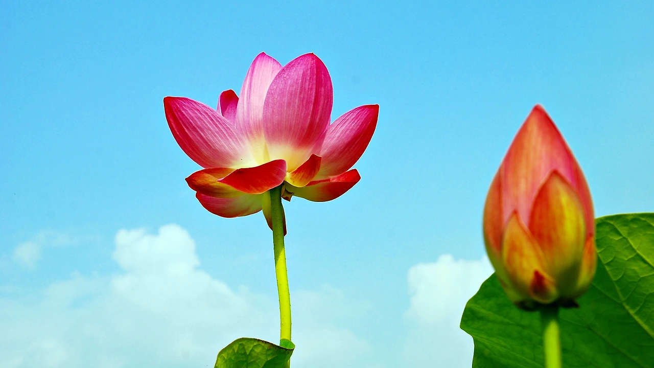 (촬영 : 2009년 7월)더구나 그 꽃을 아래에서 바라보면 하얗게 시작된 꽃잎의 색이 위로 갈수록 짙어지며 파란 하늘과 대비되는 모습이 기가 막힐 지경이 된다. 하늘을 향해 무언가를 기원하는 그 간절함이 위로 갈수록 더 강렬해지는 느낌이라고 할까. 우뚝 솟은 꽃대의 끝에 묵직한 크기의 꽃을 피우고 그 꽃의 끝에 가장 강한 색을 모아 기원의 마음이 가장 강렬해지는 모습을 연꽃은 보여준다. 불교에서 초파일이 될 때마다 연꽃 모양의 등을 만들어 다는 것 또한 이런 이유가 아닐까 싶은 생각이 든다.