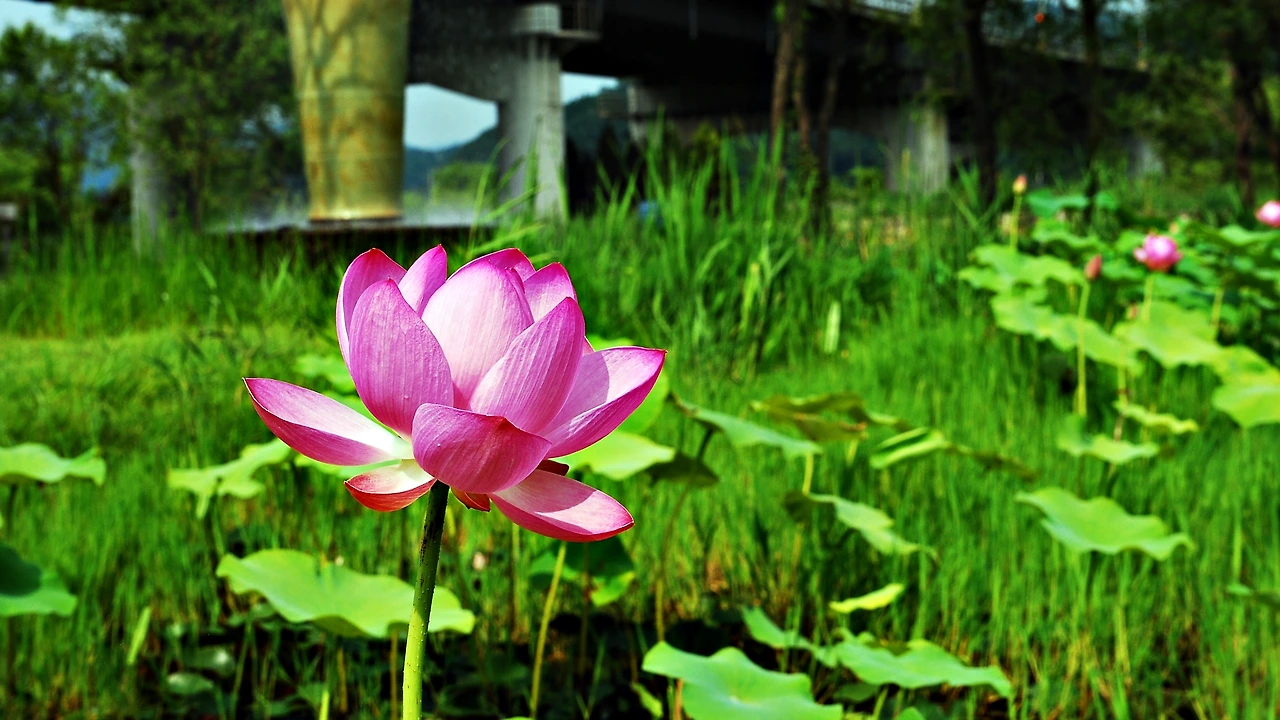 세미원에 입장해서 연꽃을 보려면 입구를 지나 조금 걸어야 한다. 한강 줄기와 맞닿아 있는 물가로 최대한 가야 한다. 많은 걸음수는 아니지만 그늘이 별로 없어 따가운 햇살을 온몸으로 맞으며 걸어야 한다. 걷다 보면 가끔 덥다며 그늘을 좀 만들지 그랬냐는 투덜거림을 들을 수 있지만 그늘이 많으면 연꽃이 이렇게 피어날 수 있겠나. 그저 얄팍한 인간의 욕심일 뿐이라는 생각이 든다. 하여튼 그렇게 걸어 들어가면 큰 연못들이 나타나고 그 사이로 길이 만들어져 있다. 애초에 이 세미원을 만들 때 연못 6개를 설치하여 연꽃과 수련·창포를 심어놓고 6개의 연못을 거쳐간 한강물이 중금속과 부유물질이 거의 제거된 뒤 팔당댐으로 흘러들어 가도록 구성하였다고 한다.