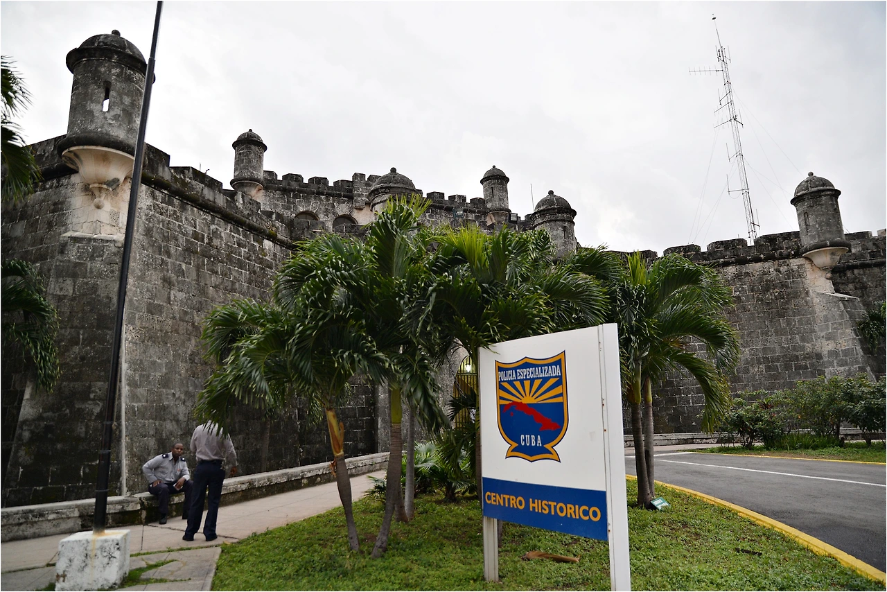 아바나 중앙 경찰서 입구의 모습. 이 단단해 보이는 성 앞에 경찰서를 알리는 표지판이 작게 서 있었다. 그런데 그 경찰서.... 앞서 중앙역으로 택시를 타고 가다가 보았던 그 성(?)이 바로 그 경찰서였다. 진입금지 표지판이 딱 보였던 바로 그 곳~!([쿠바 #10] 참고하세요)그 곳이 경찰서 건물로 쓰이고 있는지도 몰랐지만 그 곳에 이렇게 다시 오게 될 줄이야...! 아이러니한 일이었다. 진입금지 표지판은 그야말로 이곳으로 진입하지 말았어야 했다고 다시금 말을 하는 것 같았다. 더욱이 스페인어를 거의 할 줄 모르는 여행자에게 이곳은 진입해서는 안되는 곳이었다. 가지 말아야 할 곳을 기어이 가고야 마는 일이 벌어진 것이었다.