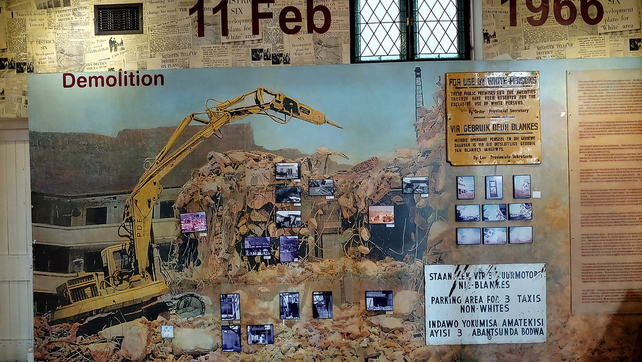 이 디스트릭트 식스 박물관(District 6 Museum)은 아파르트헤이트 시대에 강제 철거당했던 옛 다문화 공동체인 디스트릭트 식스를 기억하기 위한 공간이다. 1876년 직공, 이민자, 해방된 노예, 상인들로 구성된 다문화 공동체가 100년 가까이 이곳에서 꽤 번성한 주거 지역을 만들며 살아가고 있었는데, 1966년 국민당이 이 주거지구를 백인 전용 지역으로 선언하면서 6만 명이 넘는 주민들을 강제로 몰아내고 집들을 파괴하기 시작하였다고 한다. 그럼에도 주민들은 자신들이 살던 터전이 재개발되는 것을 끝까지 막아서며 당시 사람들의 삶의 모습, 강제 철거되는 모습 등을 기억하기 위해 이곳에 박물관을 만들어 기억하고 있는 것이다.