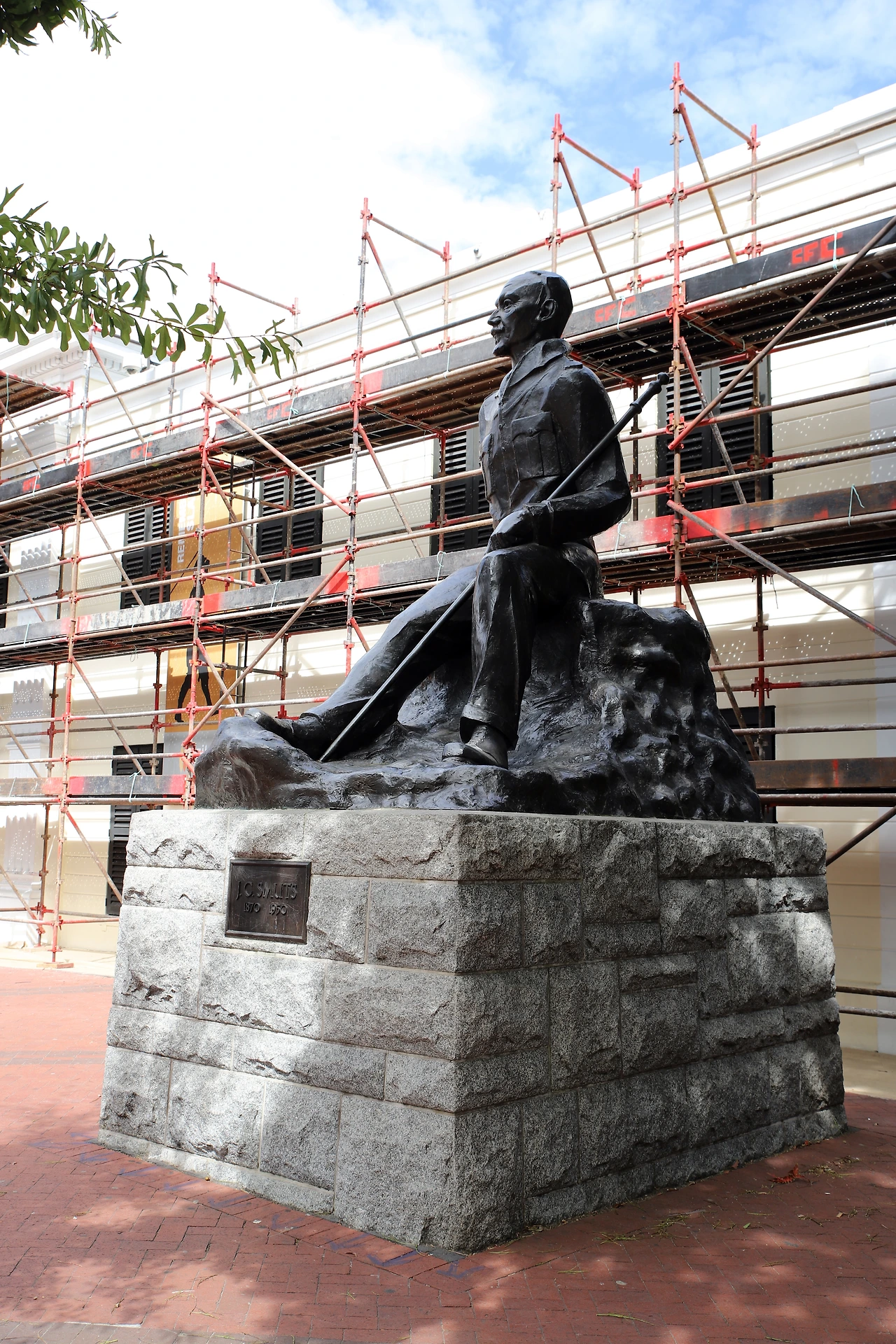 공사중인 노예숙소의 정면부. 정문 옆에는 얀 크리스티안 스뮈츠(Jan Christiaan Smuts )의 동상이 버티고 서 있다.