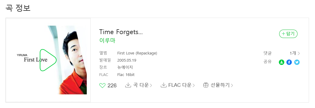 어느 날 출근길... USB에 담아둔 여러 음악들 중에 조용한 피아노곡이 듣고 싶어 이루마의 음악 폴더를 찾아 듣기 시작했다. 여러 곡들이 흘렀고 마침 신호에 걸려 차가 멈추었다. 들리는 그 음악이 너무 좋아 제목을 보려고 창을 보았는데... "time forgets....mp3"