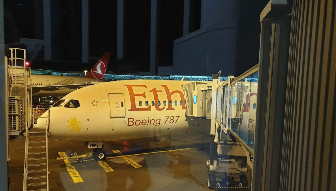 7시 55분경 우리가 탈 비행기 앞에 도착했다. 이 비행기는 보딩 타임은 7시 30분이었다. 이미 많은 사람들이 비행기 탑승을 했고 우리는 뒤따라 걸어오는 일행들을 재촉하며 부랴부랴 비행기 탑승을 마쳤다. 다행히도 길을 헤매지 않았고 물 한 모금 마실 새도 없이 부지런히 챙긴 덕분에 무사히 전원이 탑승에 성공했다. 에티오피아항공 ET847은 우리를 태운 지 얼마 안 되어 문을 닫고 활주로로 이동해 이륙했다. 이때 시간은 08:20!! 환승시간에 조금 더 여유를 두었어야 했다는 생각이 들었다. 비행기 환승에 이렇게까지 짜릿한 스릴을 느낄 필요가 없으니까...