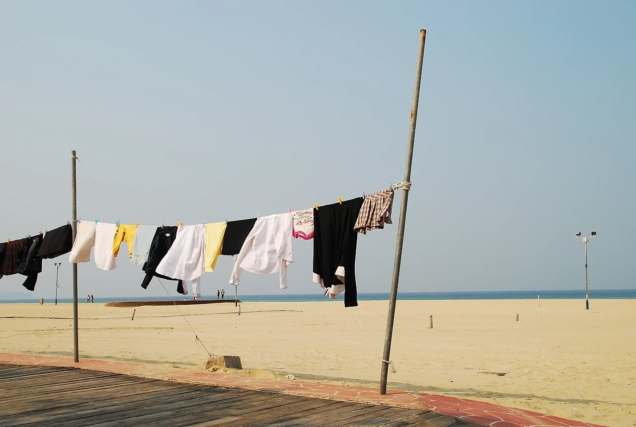 가을이 짙어져 가는 어느날 강릉 경포 해수욕장의 백사장 끝 쪽에 있는 나무 데크를 따라 걷다가 이런 풍경을 만났다. 여름이라면 절대 있을 수가 없는 풍경이다. 사진에 보이지 않는 데크 뒤편으로는 작은 식당을 하는가게가 있었고 아마도 그 가게에서 내건 빨래로 보였다. 멀리서 불어오는 해풍에 그렇게 빨래를 말리고 있었다. 마치 어느 시골 어촌 마을에서 해풍에 생선들을 말리듯이 빨랫줄에 빨래들이 줄지어 걸려있었다.