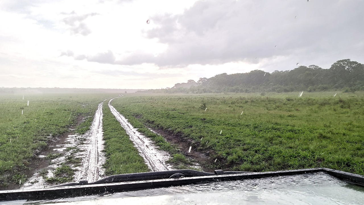 그런데 문제는 시야 확보를 위해 양 옆과 앞이 뻥 뚫려 있는 차량이라 비가 마구 튀어 금세 비옷을 흠뻑 적셨다. 특히 앞좌석에 앉은 나는 차량의 진행 방향 탓에 접어 높은 앞유리창에 고인 빗물마저 나에게 튀어 오르는 바람에 눈을 제대로 뜨기도 어려웠다. 카메라만 간신히 비옷 안으로 숨겨 보호할 뿐이었다.