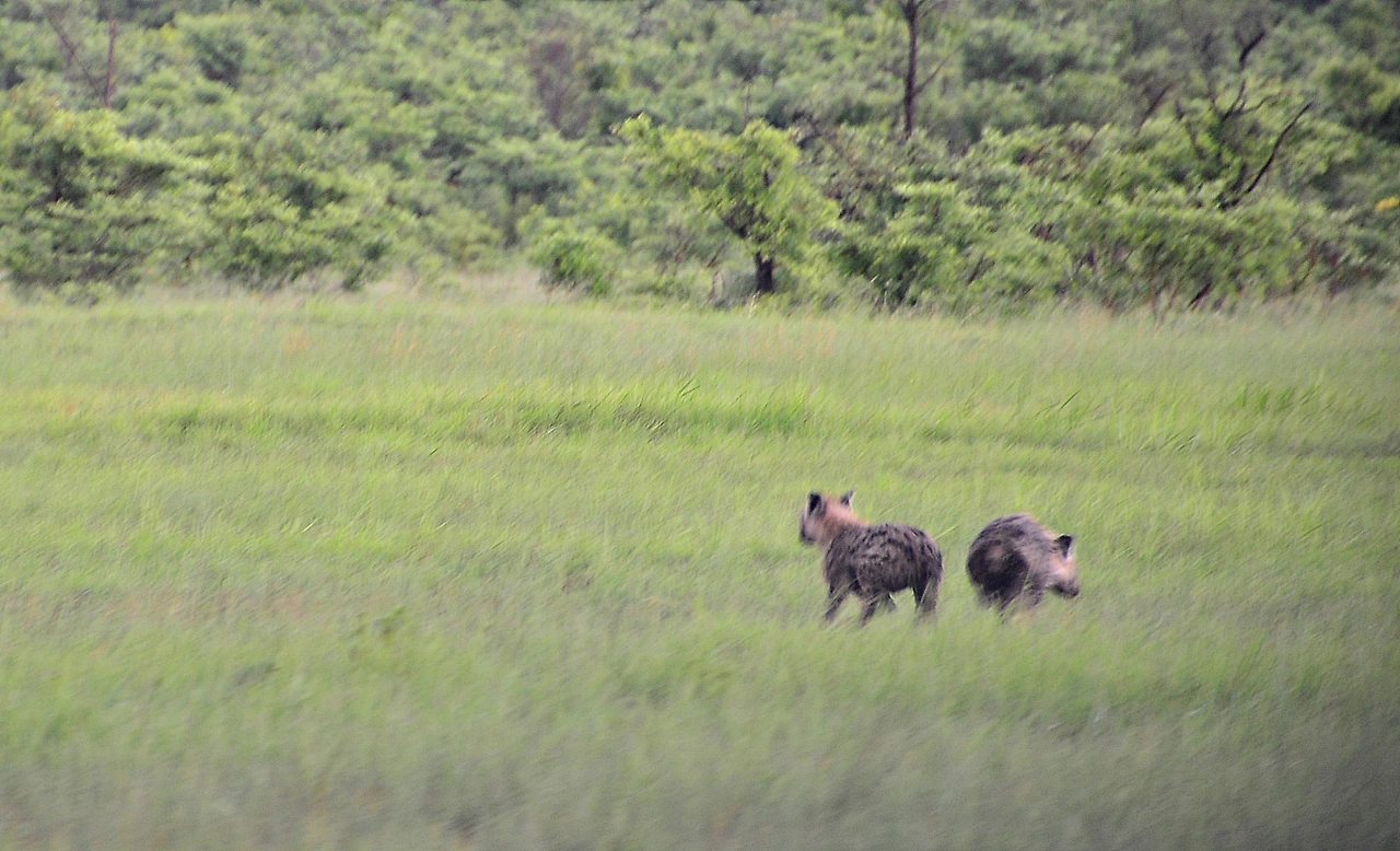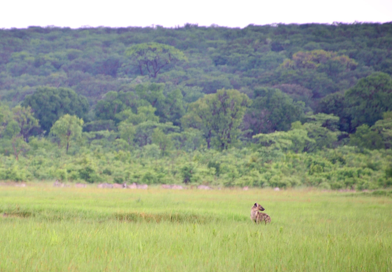 나무 뒤에 숨어 스스로 신비로움을 만들어 준 기린을 뒤로하고 다시 프린스는 다음 동물을 찾기 위해 운전을 시작했다. 정해진 게임 드라이브 코스로 계속 진행하다 오른쪽 초원 풀숲 사이에 무언가 있다고 프린스가 다시 알려주었다. 어쩜 그렇게 잘 찾아내는지... 하이에나였다. 사파리 차량에서 꽤나 먼 곳에서 이곳과 주변을 주시하는 야생 하이에나가 나타난 것이었다. 주변 경계를 잔뜩 하면서 먹잇감을 찾는 모양이었다. 처음에 한 마리인 줄 알았는데 풀숲에서 한 녀석이 또 스윽~ 하고 나타났다. 어찌나 경계심이 투철한 지 우리의 움직임을 살펴보더니 이내 다시 어디론가 사라졌다.