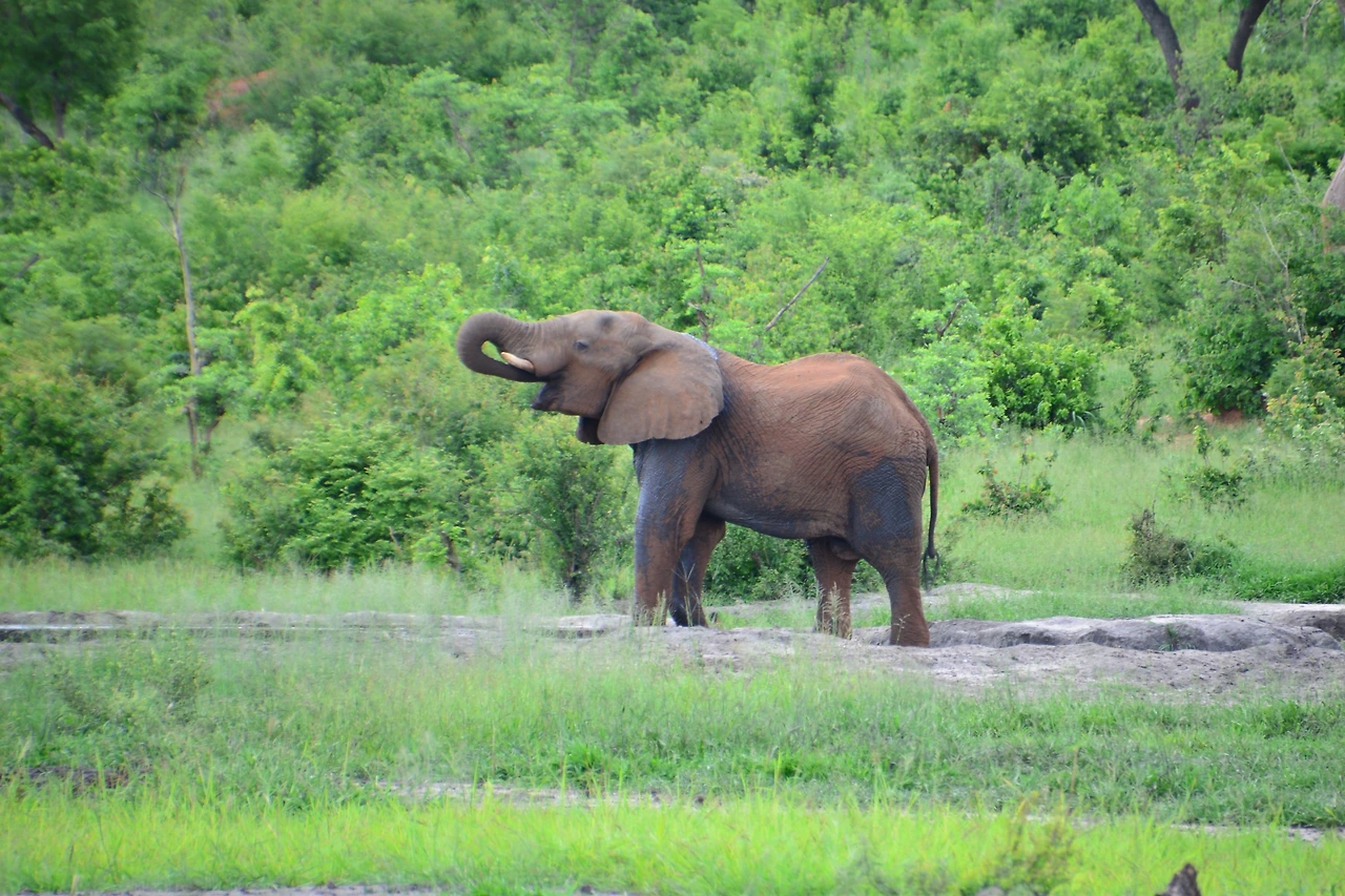 녀석은 자신을 구경하러 온 사람 따위는 신경조차 쓰지 않고 물웅덩이 옆에서 긴 코로 물을 마시고 있었다. 그런데 코끼리는 가족 단위로 집단생활을 하지 않나?라고 생각하는 순간 옆 풀 숲에서 스윽~하고 움직이는 또 한 마리의 코끼리가 보였다. 그 녀석은 자신의 모습을 내보이기가 창피했는지 풀숲에서 은폐한 채 끝내 완전한 모습을 보여주지는 않았다. 처음 녀석만 우리 보고 맘껏 구경하라는 듯 연기를 하는 것 같았다.