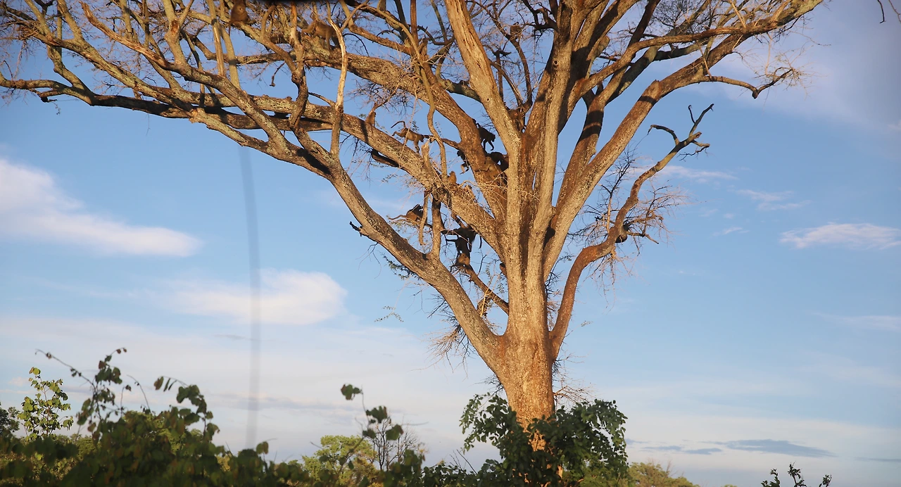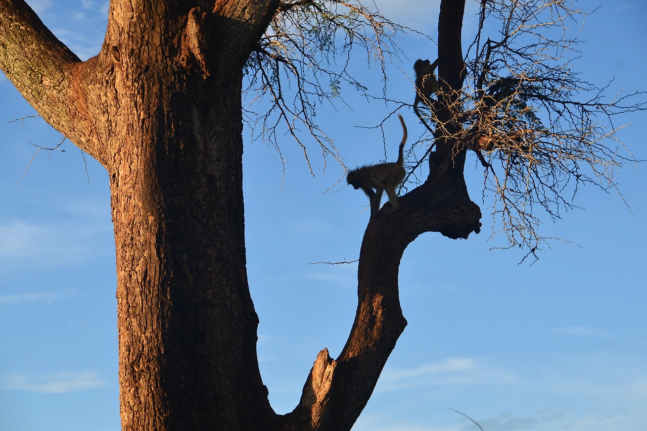 조금 떨어진 곳에 있는 또 다른 나무에서는 나뭇가지 사이사이로 무언가 분주한 움직임이 포착되었다. 원숭이들이었다. 워낙 이곳 아프리카에서는 도로 주변에서도 발견되는 녀석들이라 신기함은 덜 했지만 야생에서 나뭇가지를 타고 다니는 녀석들의 모습을 본다는 것은 또 다른 재미였다. 거의 열 마리쯤 되어 보이는 녀석들이 큰 나뭇가지의 이곳저곳을 분주히 왔다 갔다 하고 있었다.