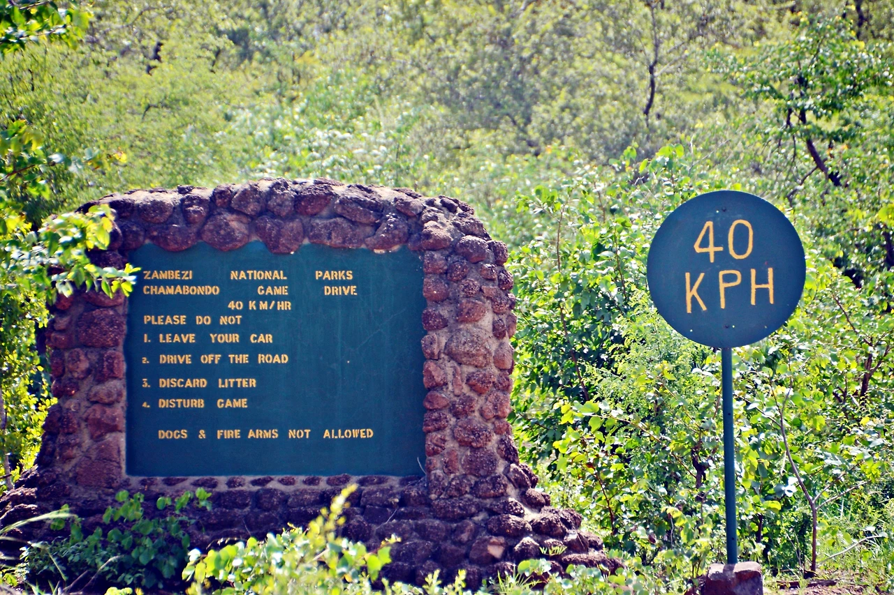 우리가 선택한 사파리 투어지는 잠베지 국립공원에 있는 샤마본도 게임 드라이브(Chamabondo Game Drive) 코스였다. 우리가 흔히 '사파리'라고 하는 것, 그러니까 개조된 차량을 타고 초원에 있는 동물들을 찾아다니는 것을 '게임 드라이브(Game Drive)'라고 한다. 아프리카에서는 사파리라는 표현보다는 게임 드라이브라는 말을 더 쓴다고 한다. 입구에 간단한 안내 간판이 있고 그 뒤로 매표소 겸 안내소가 있다. 프린스는 안내소 직원과 웃으며 몇 마디를 나눈 뒤 드라이브를 시작했다. 조금 지나면 숲으로 들어가기 전 주의해야 할 점들이 적힌 안내판이 다시 나온다. 게임 드라이브의 규칙이다. 간단한 영어로 되어 있어 알아보기는 어렵지 않다.