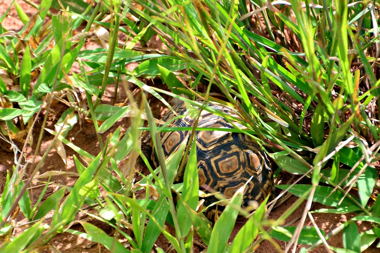 그러다가 프린스가 갑자기 차를 세우더니 앞으로 가질 않았다. 그러더니 나를 보고 왼쪽 밑을 잘 살펴보라고 했다. 뭐가 있다는 거지? 지금껏 본 것이라고는 이름 모를 아프리카의 새들뿐이었는데... 땅바닥을 잘 살펴보다 보니 풀숲 사이에서 작은 거북이 하나가 보였다. 크기는 손바닥만 한 것이었는데 차가 지나다니는 도로 한 켠으로 물기가 있는 풀 숲 사이에 숨어 있었다. 열대 사파리 투어인데 거북이? 어이없기도 하고 신기하기도 했다. 사실 큰 동물들을 볼 수 있을 것이라고 기대했는데 손바닥만 한 거북이라니? 그런데 생각해보니 사파리에서 거북이를 만난다는 것도 들어본 적이 없는 얘기였다. 이곳만의 특징인지, 아니면 원래 진짜 야생동물 사파리 투어에서는 거북이를 볼 수도 있다는 건지 알 수가 없었다. 되돌아 생각해보면 바닷가도 아닌 아프리카 대륙 한가운데에서 거북이를 본다는 것은 신기한 일임에는 틀림없었다. 그런데 그것도 그거지만 이 자그마한 거북이를 발견하고 차를 세운 프린스도 참 신기했다. 그걸 어떻게 발견한 걸까...?